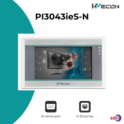 WECON HMI PI3043ieS-N series / ขนาดจอ 4.3 นิ้ว / 1 x Ethernet / 3 x Communication serial port , RS232/RS485/RS422 / จอควบคุมแสดงผลและสั่งงานเครื่องจักร