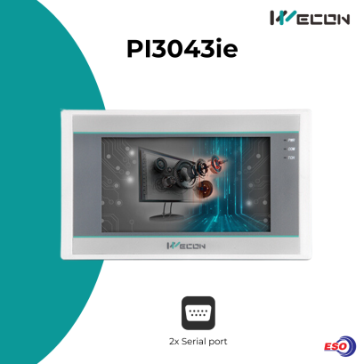 WECON HMI PI3043ie series / ขนาดจอ 4.3 นิ้ว / 2 x Communication serial port , RS232/RS485/RS422 / จอควบคุมแสดงผลและสั่งงานเครื่องจักร