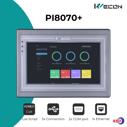 WECON HMI PI8070+ series / ขนาดจอ 7 นิ้ว / 1 x Ethernet / 3 x Communication serial port / จอสำหรับใช้งานควบคุมสั่งงานทั่วไป รองรับฟังก์ชั่น Lua Script