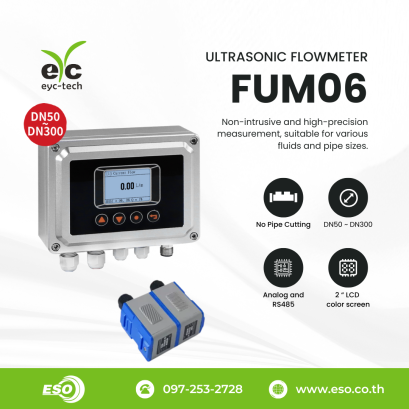 Ultrasonic Flowmeter Clamp-on , Pipe Size DN50-DN300 , Range 0.1..10m/s, Output 4-20mA , 0-10VDC , RS485, Display, eyc-tech