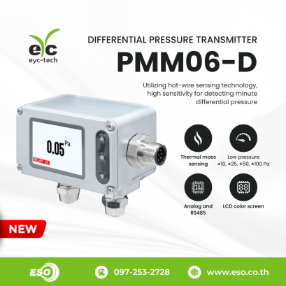 Differential Pressure Transmitter PMM06-D Brand eyctech / Measuring range:±10, ±25, ±50, ±100 , Output : 4 ... 20 mA / 0 ... 10 V / RS-485 / Relay