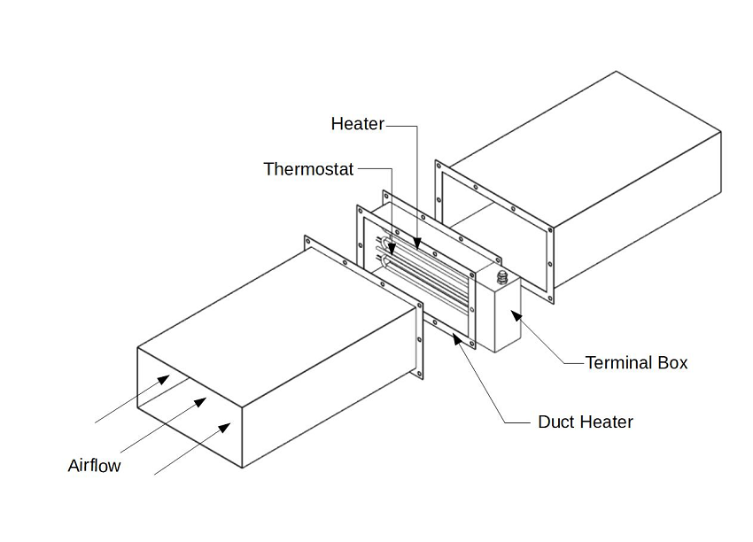1. ฮีทเตอร์ มีหน้าที่ทำความร้อนให้กับลมในท่อดักส์ เพื่อลดความชื้นในระบบปรับอากาศให้ความชื้นอยู่ในระดับที่เหมาะสม โดยฮีทเตอร์ที่ใช้ในDuct Heaterมี2รูปแบบ คือ ฮีทเตอร์สแตนเลสท่อกลม (Tubular Heater) และฮีทเตอร์ครีบ (Fin Heater)