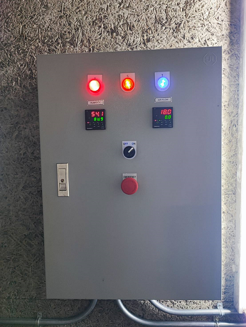 ตู้ควบคุมดักส์ฮีทเตอร์ ทำหน้าที่ควบคุมการทำงานของฮีทเตอร์ และควบคุมความชื้นให้อยู่ในระดับที่ต้องการ โดยตู้ควบคุมฮีทเตอร์มีอุปกรณ์ควบคุมส่วนประกอบหลัก ดังนี้