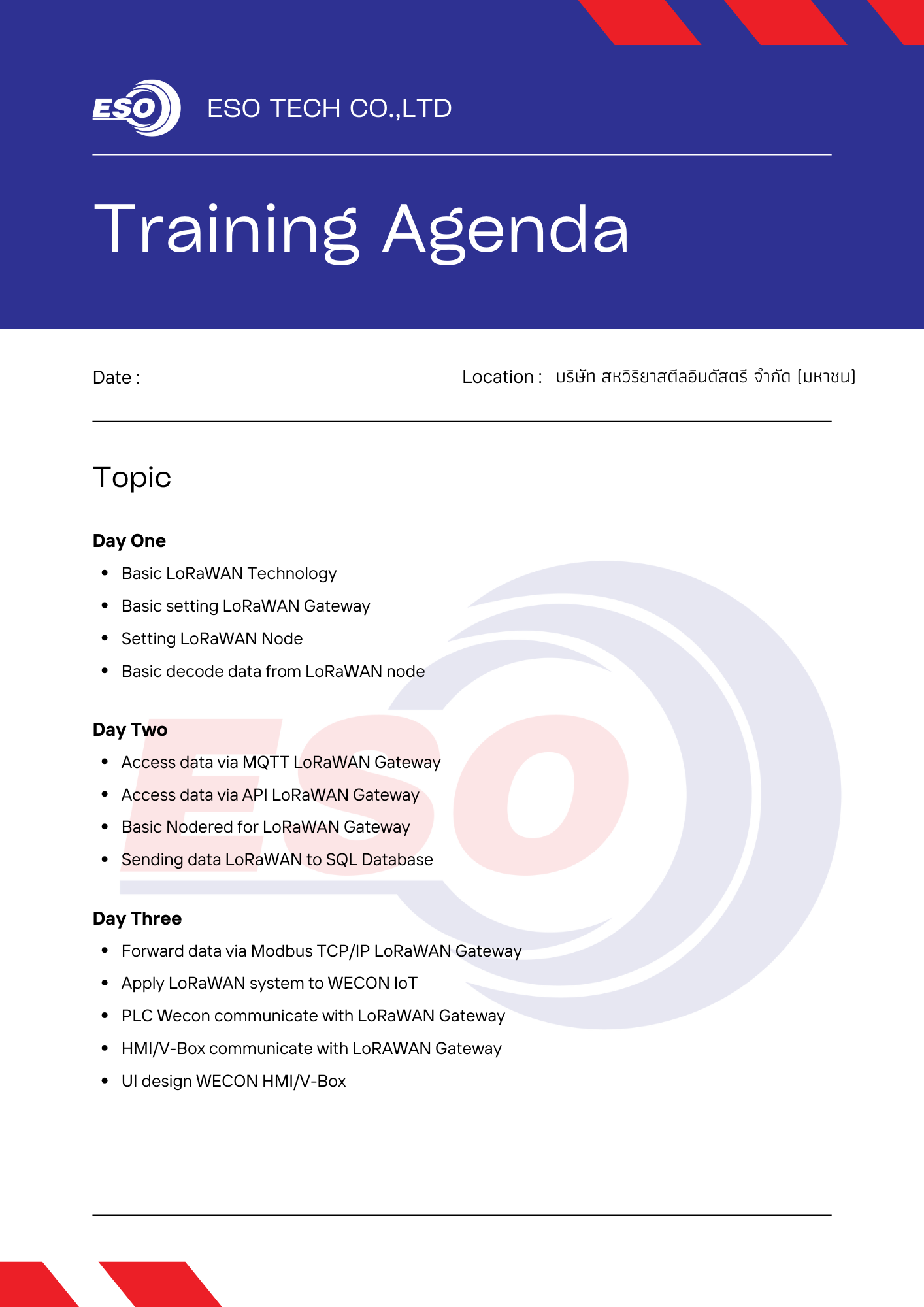 ทางบริษัท อีเอสโอ เทค จำกัด ได้รับเกียรติและความไว้วางใจจากทาง บริษัท สหวิริยาสตีลอินดัสตรี จำกัด (มหาชน) ในการจัดฝึกอบรมเรียนรู้การประยุกต์ใช้งาน LoRaWAN Technology กับงานอุตสาหกรรม และนำมาใช้งานร่วมกับ PLC/HMI/V-Box ของทาง WECON เพื่อให้เกิดประโยชน์สูงสุดในการใช้งาน