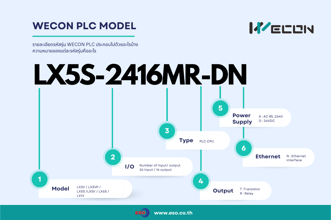หลังจากที่หลายท่านได้เรียนรู้ PLC WECON ในแต่ละรุ่นจากบทความก่อนแล้ว (ท่านสามารถอ่านบทความทำความรู้จัก PLC WECON แต่ละซีรี่ย์ได้ที่นี่ โดยรหัสของ PLC แต่ละตัวก็จะมีความหมายซึ่งจะทำให้ผู้ที่จะเลือกซื้อสั่งซื้อได้ถูกต้องตามความต้องการ ซึ่งในบทความนี้เราจะมีอธิบายรหัสแต่ละชัดว่ามีความหมายอย่างไรบ้าง