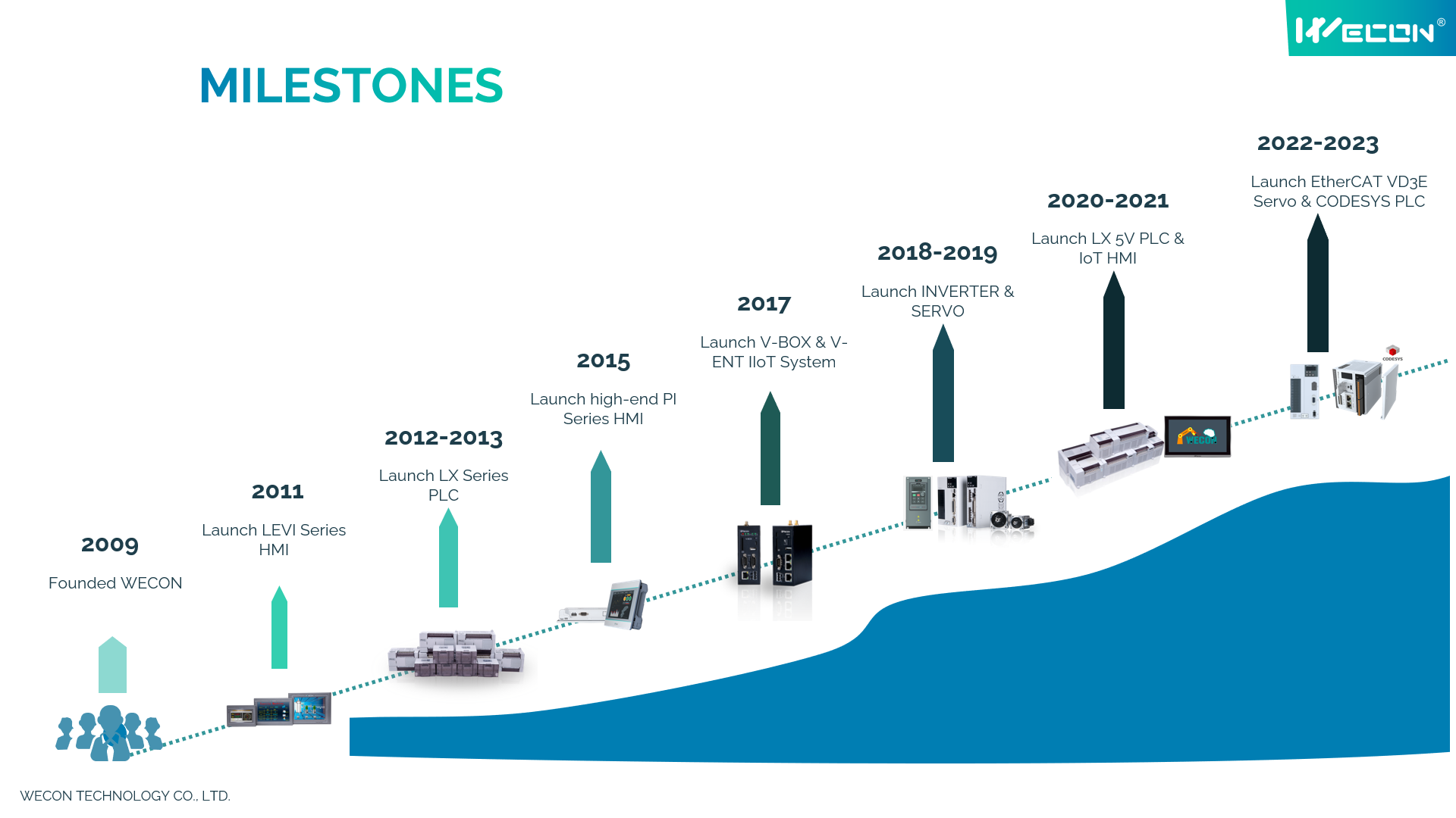 ก่อนอื่นก็จะมาขอไล่เรียง Timeline การพัฒนาผลิตภัณฑ์ของทาง WECON TECHNOLOGY ว่ามีการพัฒนาผลิตภัณฑ์มาเป็นลำดับอย่างไร