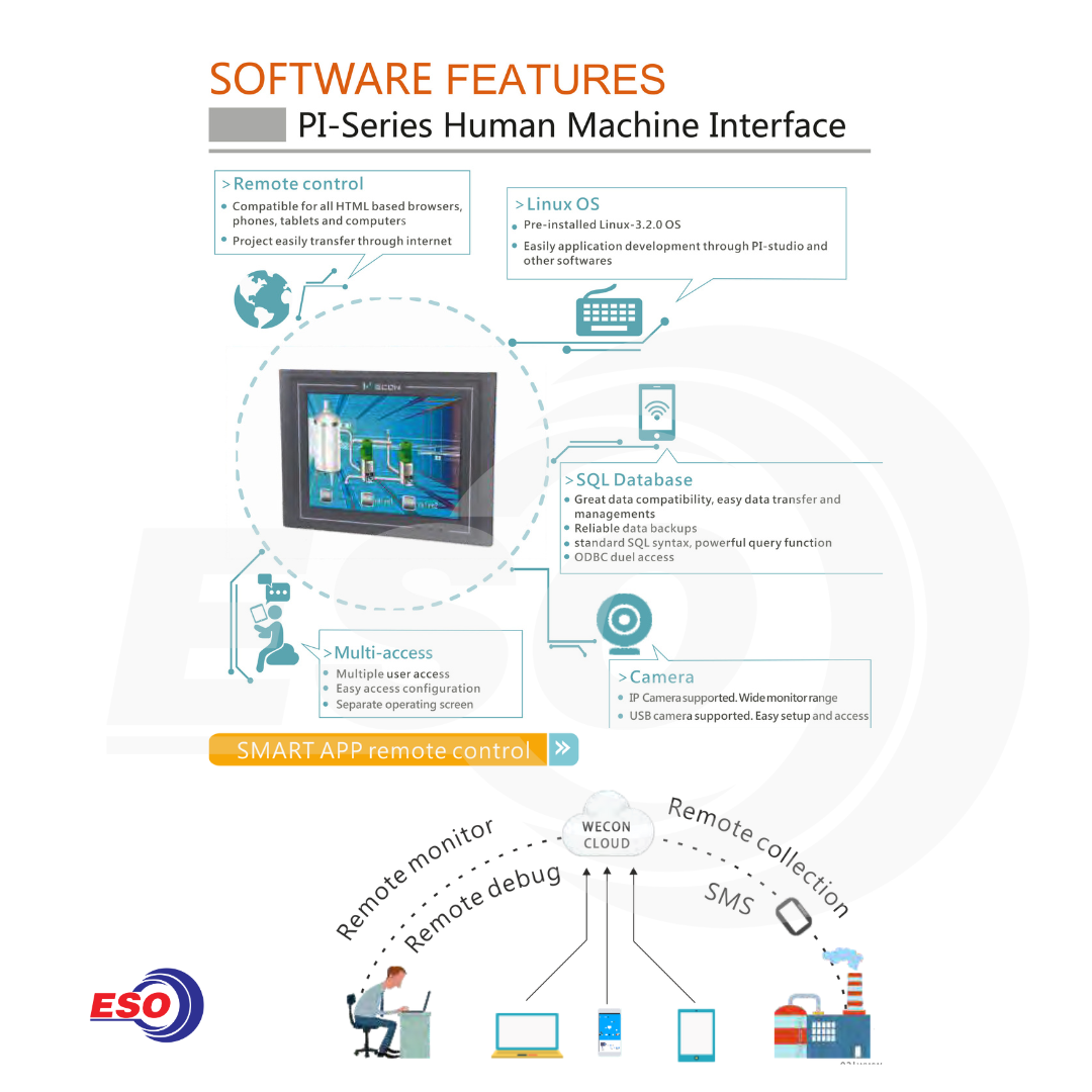 ความพิเศษของจอ HMI รุ่น PI8000 / PI9000 Series คือสามารถรีโมตหน้าจอผ่านคลาวด์ได้ด้วยซึ่งตอนสั่งซื้อจะลงท้ายด้วยรหัส -R (Remote Version) นี่เป็นจุดเริ่มต้นและจุดกำเนิดเลยก็ว่าได้ในการพัฒนา HMI ให้เข้ากับยุคสมัย IoT ซึ่งในยุคนั้นก็นับว่าเป็นของใหม่มาแรงและเป็นยุคเฟื่องฟูที่ IoT กำลังเข้ามามีบทบาทสำคัญ และ WECON คือเจ้าแรกๆ เลยก็ว่าได้ที่ทำ HMI ที่สามารถรีโมทผ่านระบบคลาวด์ได้ โดยมีการวาง Infrastructure และระบบคลาวด์พัฒนาเป็นของตัวเอง เราไม่นับรวม HMI หรือ PC Panel ที่ใช้การรีโมทผ่านโปรแกรม VNC หรือ Remote desktop program ซึ่งระบบนี้นั้นมีมาก่อนแล้วแต่มีข้อจำกัดหลายอย่างในการใช้งานในเรื่องของการ Configuration network ที่อาจจะต้องทำ Public IP ต่างๆ บลาๆ หรือติดตั้งโปรแกรมต่างๆ นาๆ