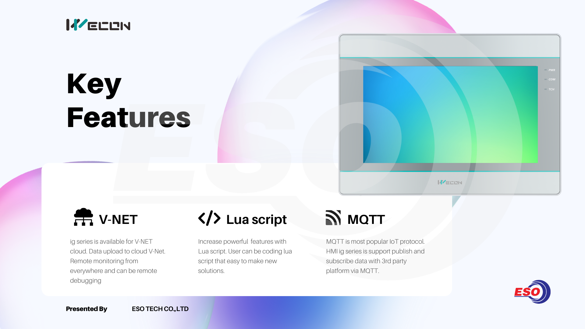 และระบบ V-NET ที่ใช้กับ V-Box ก็มีข้อดีหลายอย่างถูกออกแบบ Platform มาได้ครบถ้วนยืดหยุ่นตอบสนองต่อการใช้งานและโลกของ IoT หลายอย่าง เมื่อนำมารวมกันบนระบบเดียวได้ประโยชน์สูงสุดจึงเกิดกับผู้ใช้งานอย่างเราๆแน่นอน อีกทั้งจอ HMI รองรับ MQTT Protocol และ Lua Script อีกด้วย