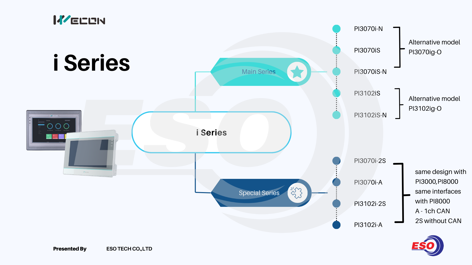 PI3000i Series เป็นรุ่นที่ทำมาทดแทน LEVI Series และ PI3000 Series Gen 1 ราคาถูกเน้นใช้งานทั่วไปคือฟังก์ชั่นแบบ Basic มากๆ มีให้เลือก 2 ขนาดคือ 7 นิ้วและ 10.2 นิ้วเท่านั้น และมีรุ่นย่อยคือการ Custom Serial port และ Protocol ต่างๆ ที่แตกต่างกันไป