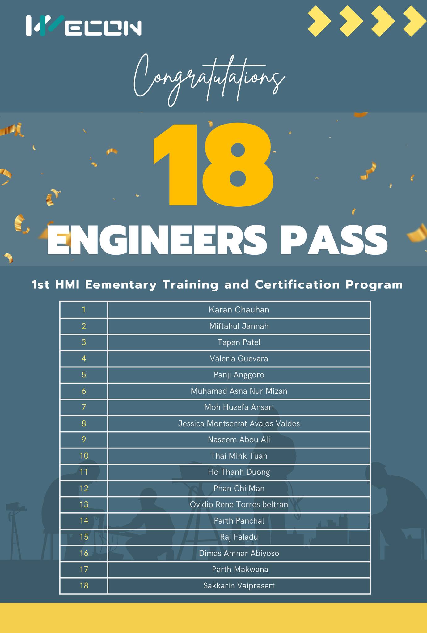 ขอแสดงความยินดีกับผู้ที่เข้าร่วมอบรมและผ่านการทดสอบความรู้ความสามารถ HMI (Human Machine Interface) แบรนด์ WECON จำนวน 18 คนจากตัวแทนจำหน่ายและพาร์ทเนอร์ทั่วโลก