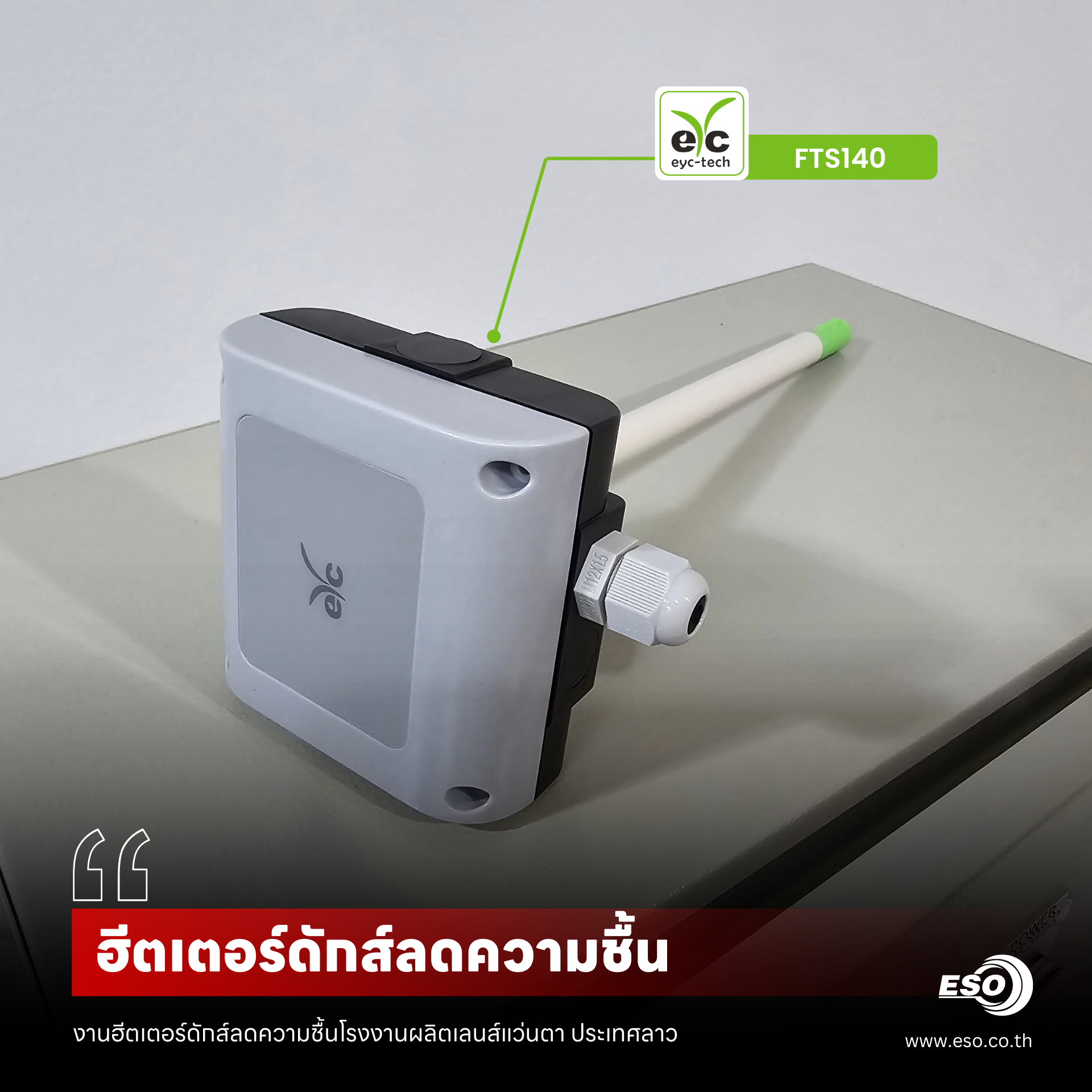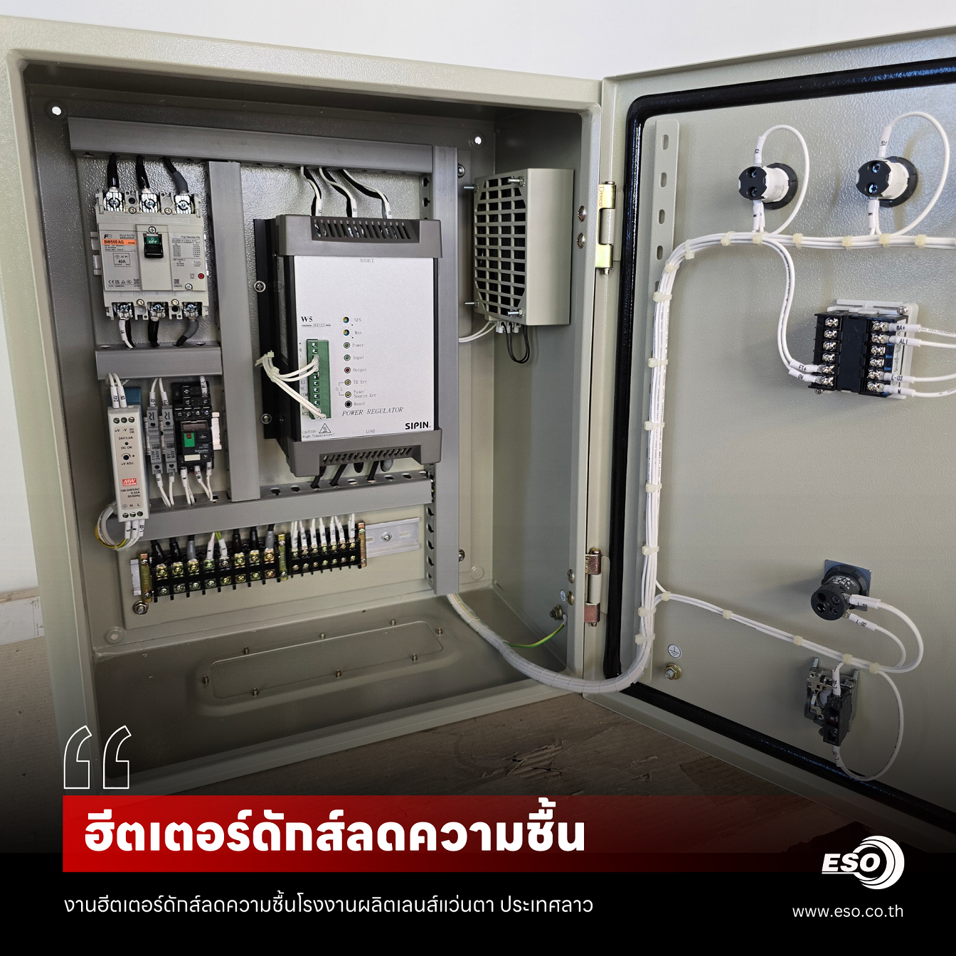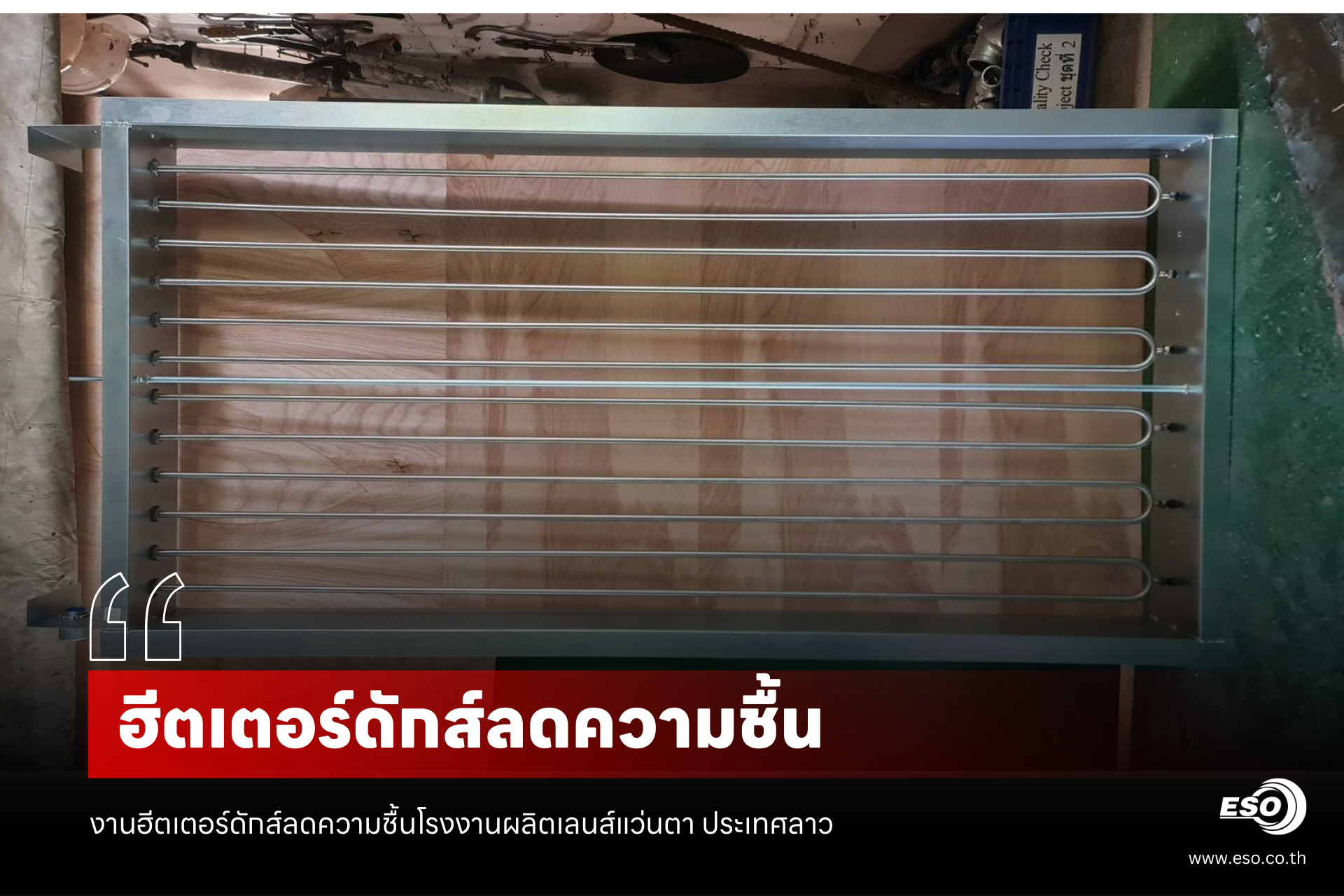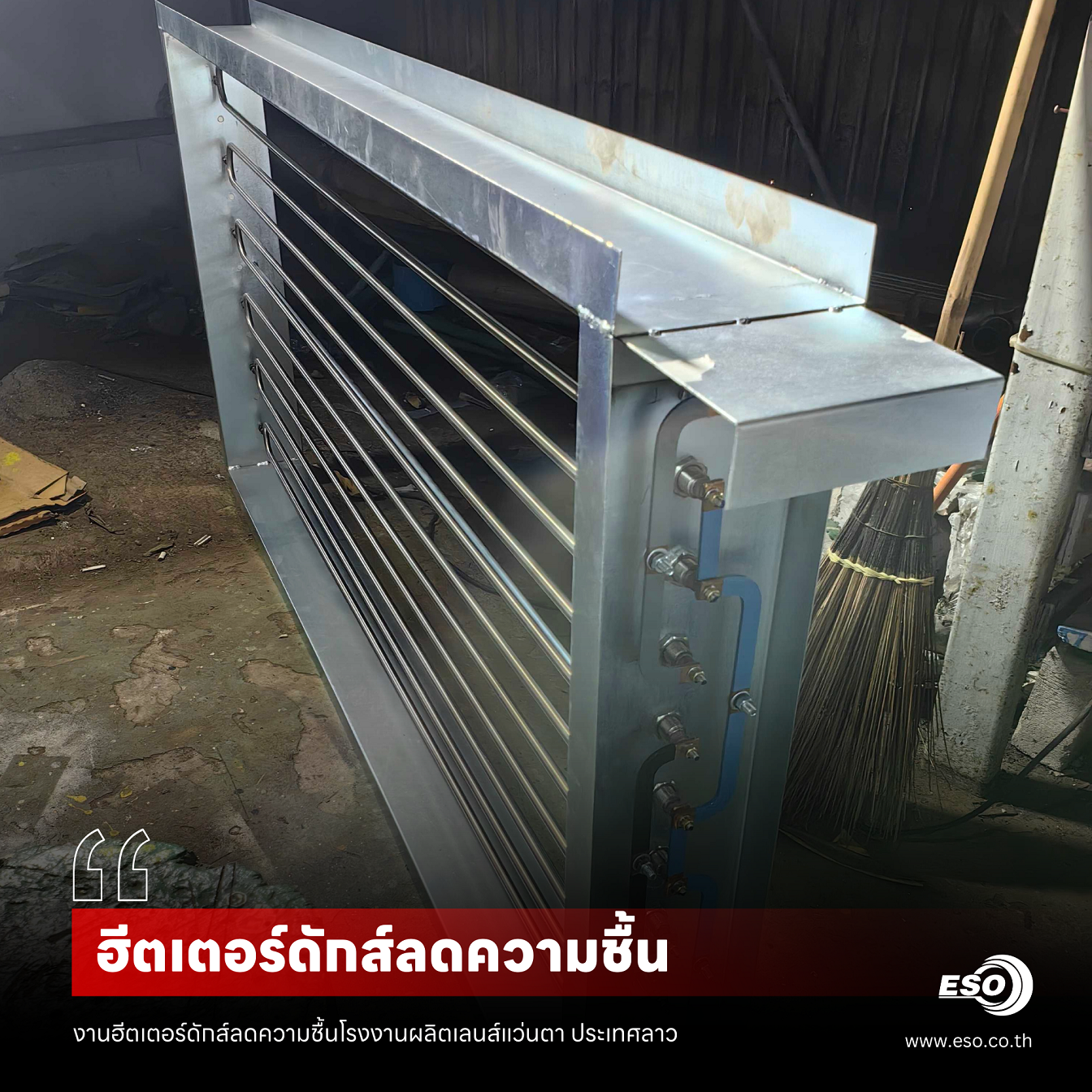 ทีมงานบริษัท อีเอสโอ เทค จำกัด ได้รับการติดต่อจากลูกค้าบริษัทรับเหมาก่อสร้างและให้บริการทางด้านวิศวกรรมชื่อดัง ในการให้คำปรึกษาออกแบบฮีตเตอร์ดักส์สำหรับลดความชื้นในอาคาร รวมไปถึงจัดหาอุปกรณ์ตู้ควบคุมและเซนเซอร์ทั้งระบบ โดยโปรเจคนี้จะนำไปติดตั้งที่โรงงานผลิตเลนส์แว่นตาที่กำลังดำเนินการก่อสร้างอยู่ที่ประเทศลาว