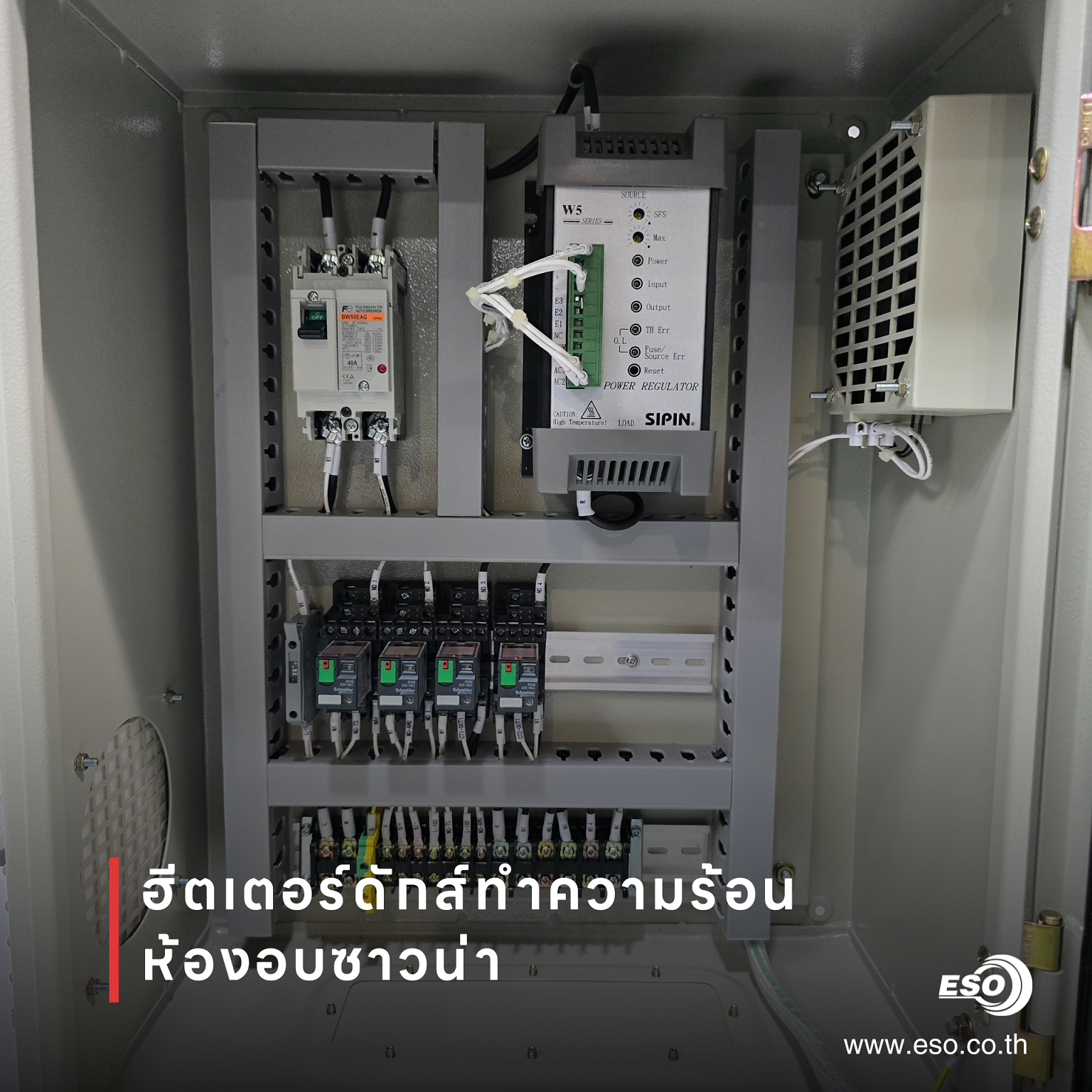 บริษัท อีเอสโอ เทค จำกัด ได้ทำการส่งมอบฮีตเตอร์ดักส์พร้อมตู้ควบคุมจำนวน 2 ชุด โดยเป็นฮีตเตอร์ดักส์ขนาด 1kW พร้อมชุดเทอร์โมสตรัทป้องกันจำนวน 2 ตัว และตู้ควบคุมฮีตเตอร์ประกอบพร้อมติดตั้งจำนวน 2 ใบ ซึ่งจะใช้ SCR Single Phase 30A พร้อม Temperature Controller SC62 Series จากแบรนด์ SIPIN เป็นอุปกรณ์ควบคุมหลัก
