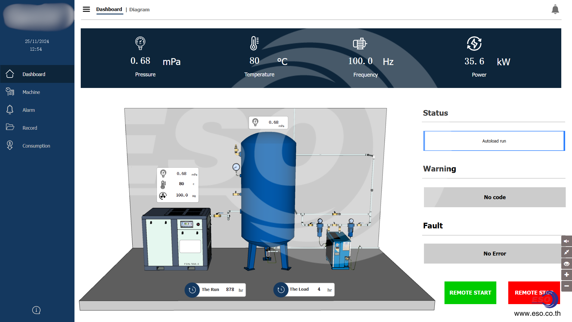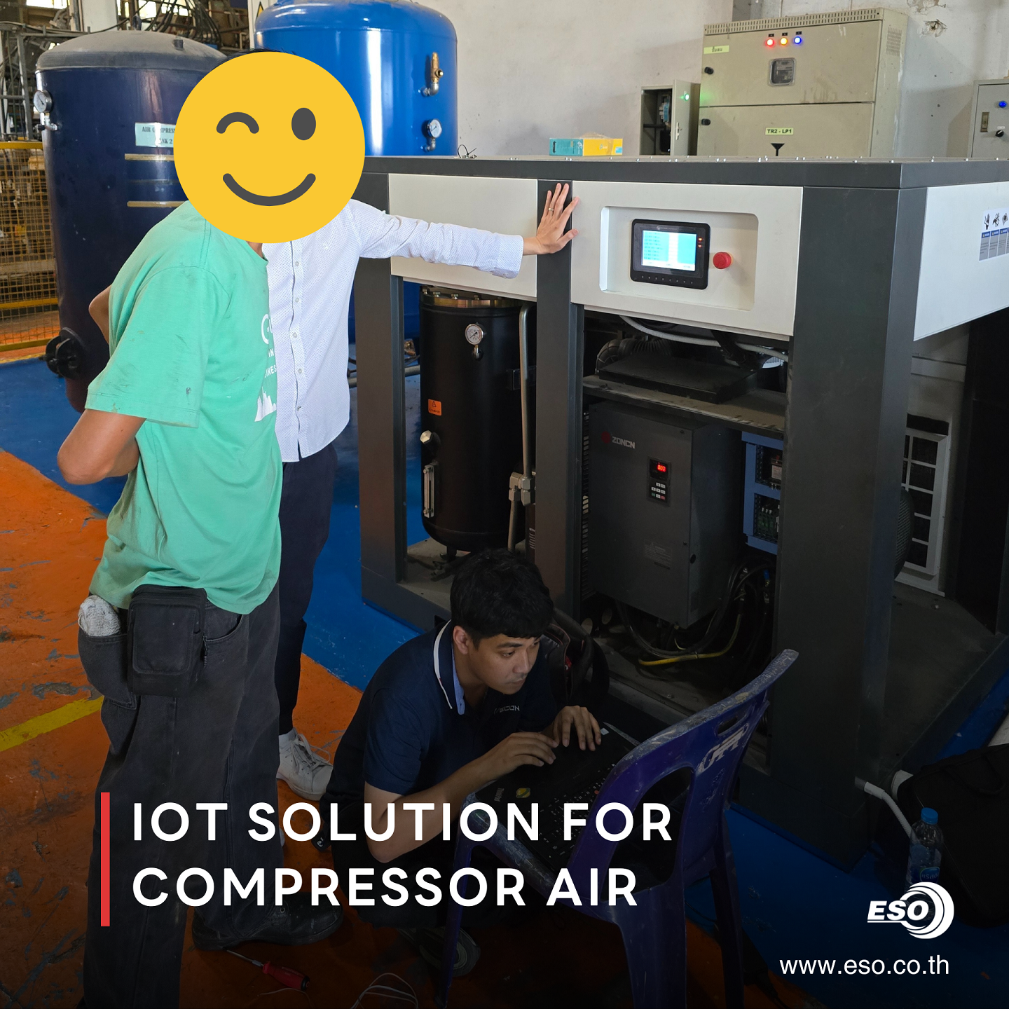 บริษัท อีเอสโอ เทค จำกัด ร่วมกับ บริษัทผู้นำเข้าและจัดจำหน่ายเครื่องอัดอากาศ หรือปั๊มลมอุตสาหกรรม ในการออกแบบและปรับปรุงประสิทธิภาพการใช้งานของเครื่องอัดอากาศสำหรับโรงงานที่ได้นำระบบ IoT เข้ามาประยุกต์ร่วมด้วยเพื่อประโยชน์สูงสุดในการใช้งาน โดยทางผู้ผลิตได้ขอคำปรึกษาและคำแนะนำจากทีมงานเพื่อร่วมกันออกแบบเครื่องอัดอากาศต้นแบบสำหรับใช้งานในโมเดล IoT และให้รองรับในเรื่องของการประหยัดพลังงาน รวมไปถึงดูข้อมูลในแต่ละ unit ย่อยที่เกี่ยวกับระบบ Utility ภายในโรงงานเพื่อช่วยลดปัญหาในการซ่อมบำรุงรวมไปถึงต้นทุนในการผลิตต่างๆ อีกทั้งยังต้องการออกแบบแพลตฟอร์มในรูปแบบง่ายค่าใช้จ่ายไม่สูง ตอบโจทย์ในเรื่องของ Carbon credit ในยุคปัจจุบันด้วย