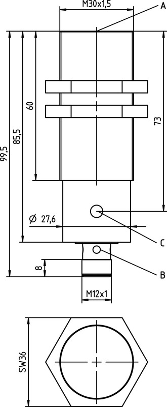 ภาพแสดง Adjust knob ที่ตำแหน่ง C ของ Capacitive sensor แบรนด์ Leuze