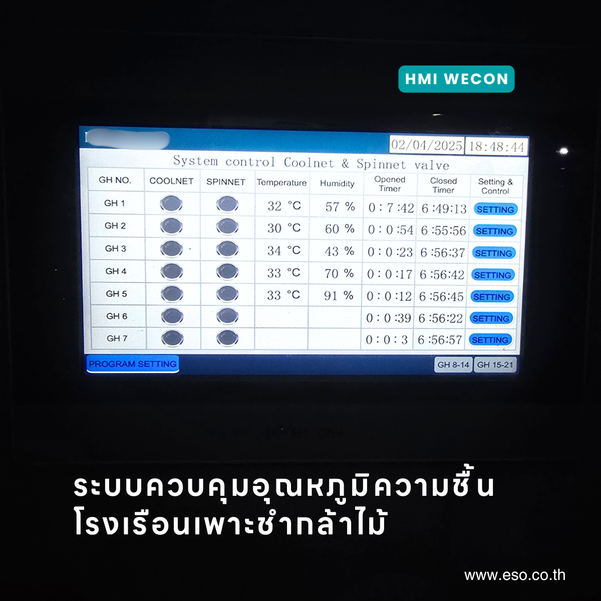 ตู้ควบคุมโรงเรือนเพาะชำกล้าไม้ควบคุมด้วย PLC HMI แบรนด์ WECON