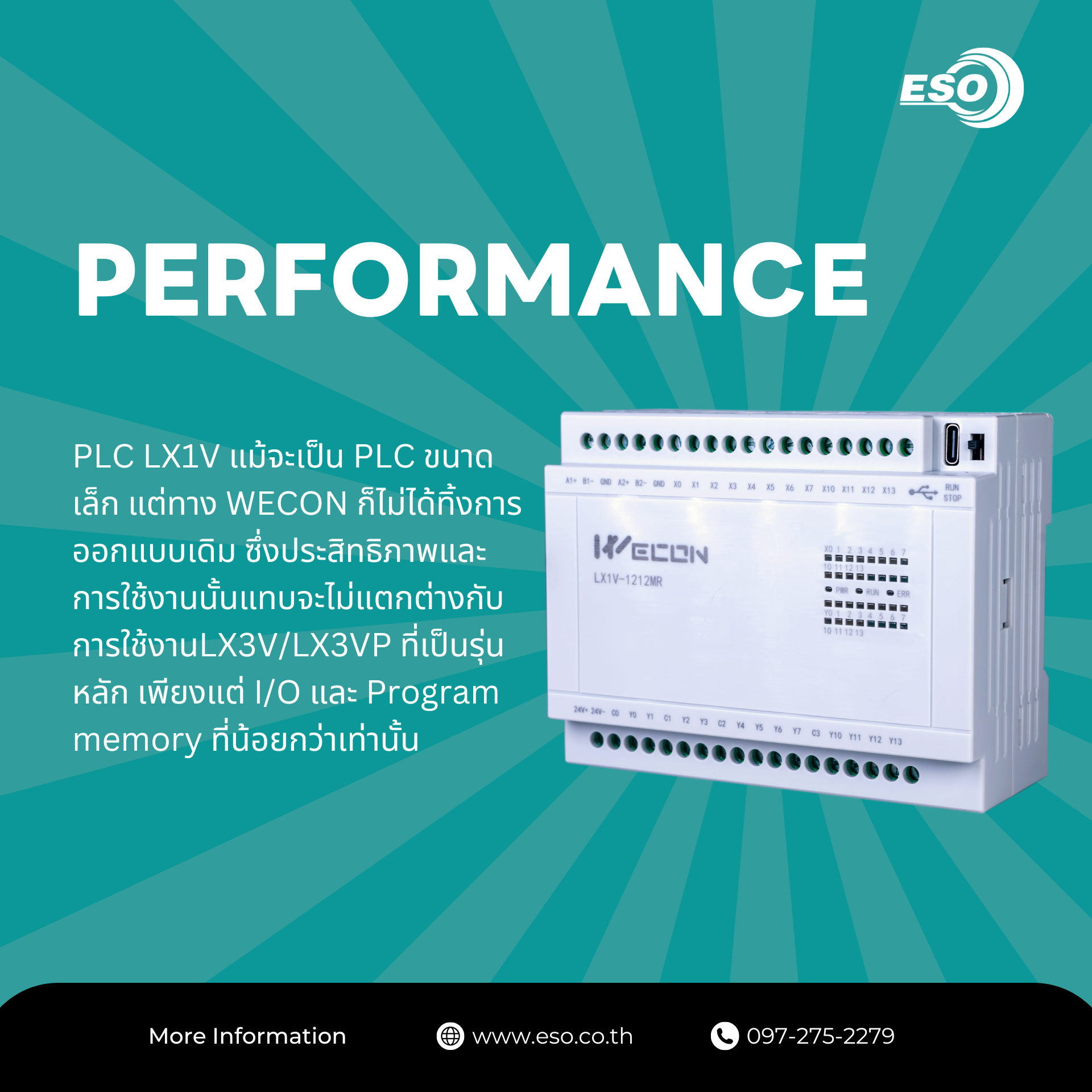 3. PERFORMANCE หนึ่งเหตุผลที่ตอบโจทย์ความคุ้มค่าของผู้ใช้งานและจากการสัมผัสจริงจากทีมงาน PLC LX1V นั้นประสิทธิภาพการใช้งานแทบจะเทียบเท่ากับ PLC LX3V/LX3VP ซีรี่ย์หลักที่มีความทนทานและประสิทธิภาพที่ตอบโจทย์กับการใช้งานในอุตสาหกรรม จะต่างเพียงแค่ I/O ที่น้อยกว่ารวมไปถึง Program memory ที่น้อยกว่าเพียงเท่านั้น
