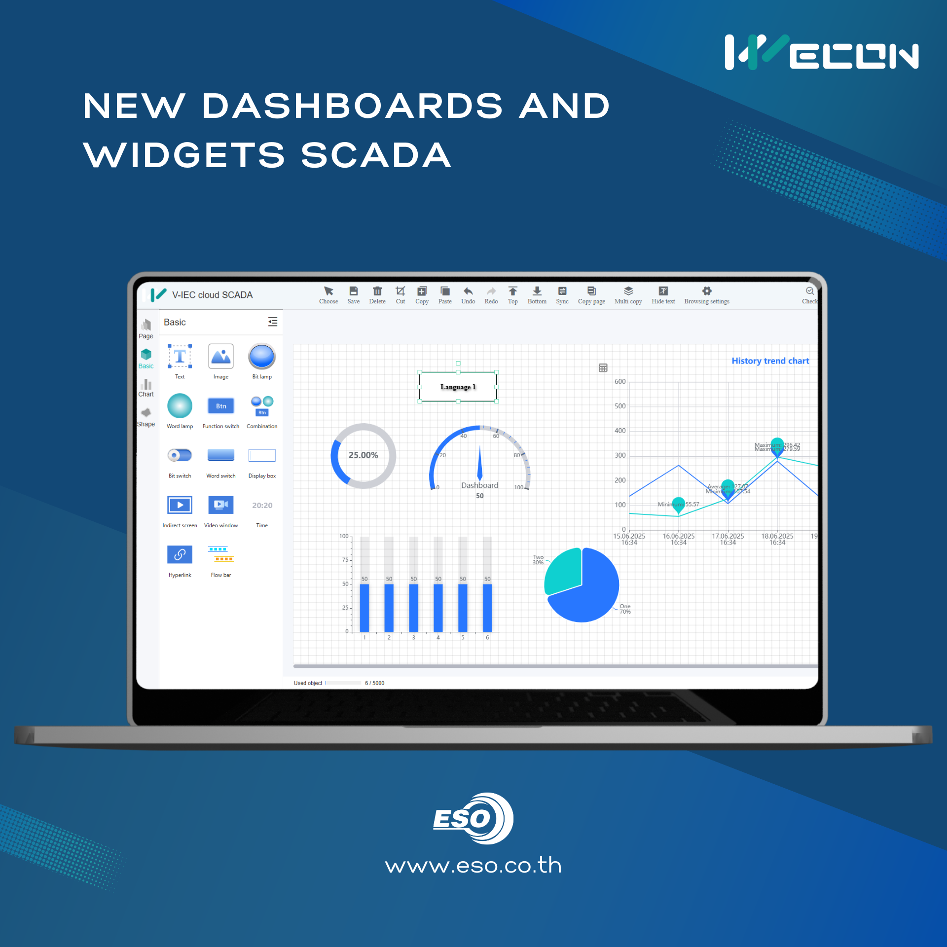 DASHBOARDS AND WIDGETS SCADA ใครที่คาดหวังว่าจะมี Tools เพิ่มเติมจากเดิมไหม ตอบตรงนี้เลยคือไม่มี ฮ่าๆ Tools ทุกอย่างยังคงมีเหมือนเดิม แต่ แต่ แต่ มันสวยขึ้นและเปลี่ยนดีไซน์ใหม่เกือบทุก Widget และสวยขึ้น มีความมินิมอลขึ้น ตัว color palettes สีพื้นฐานดูทำการบ้านมาดีเรื่อง UI Design สากลใช้กัน โดยเฉพาะ Trend หรือกราฟก็ค่อนข้างดีปรับ shaded gradient พื้นที่ใต้กราฟได้ด้วย เจ๋งฝุดๆ ลองไปปรับเล่นกันดูนะ