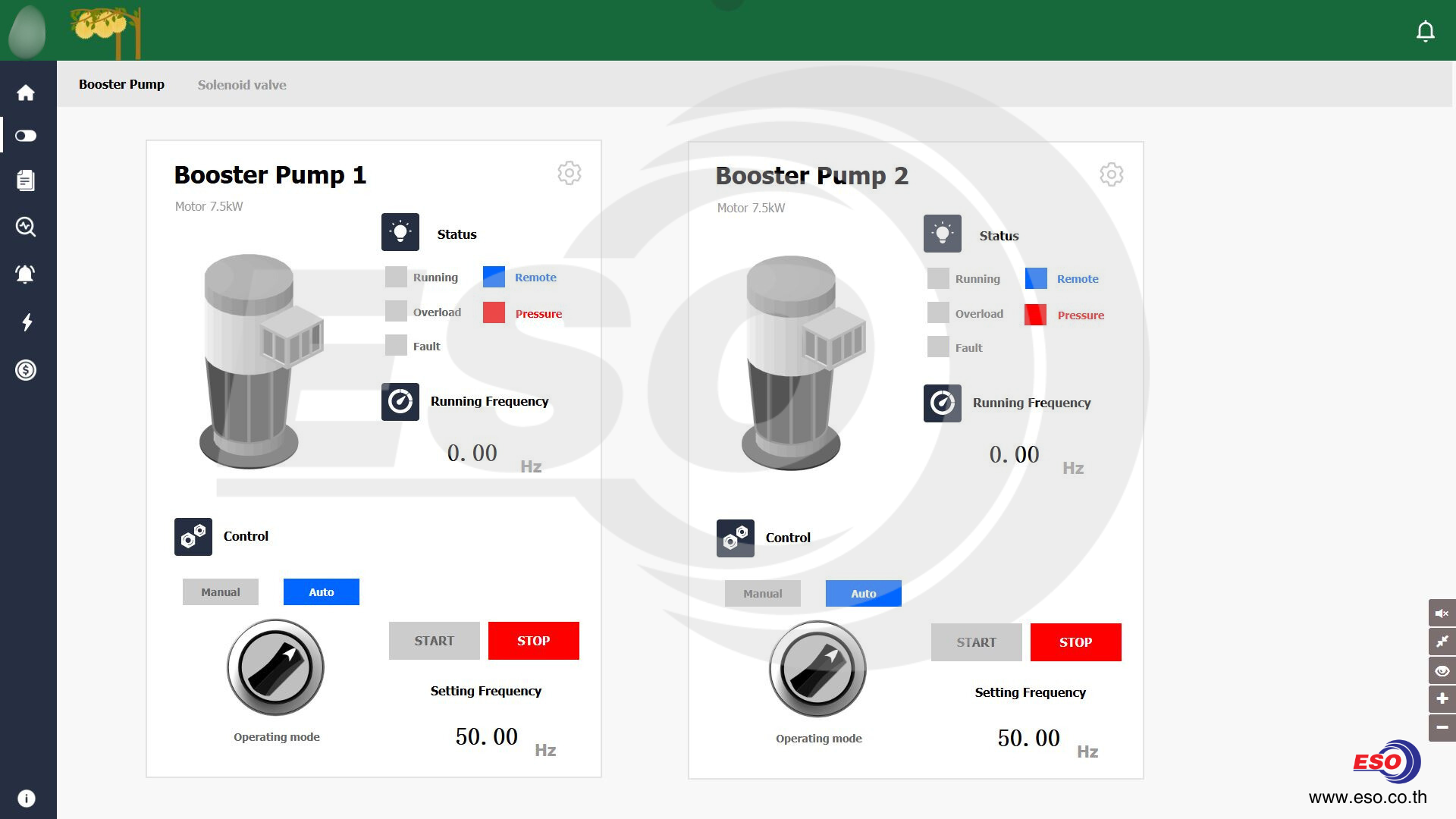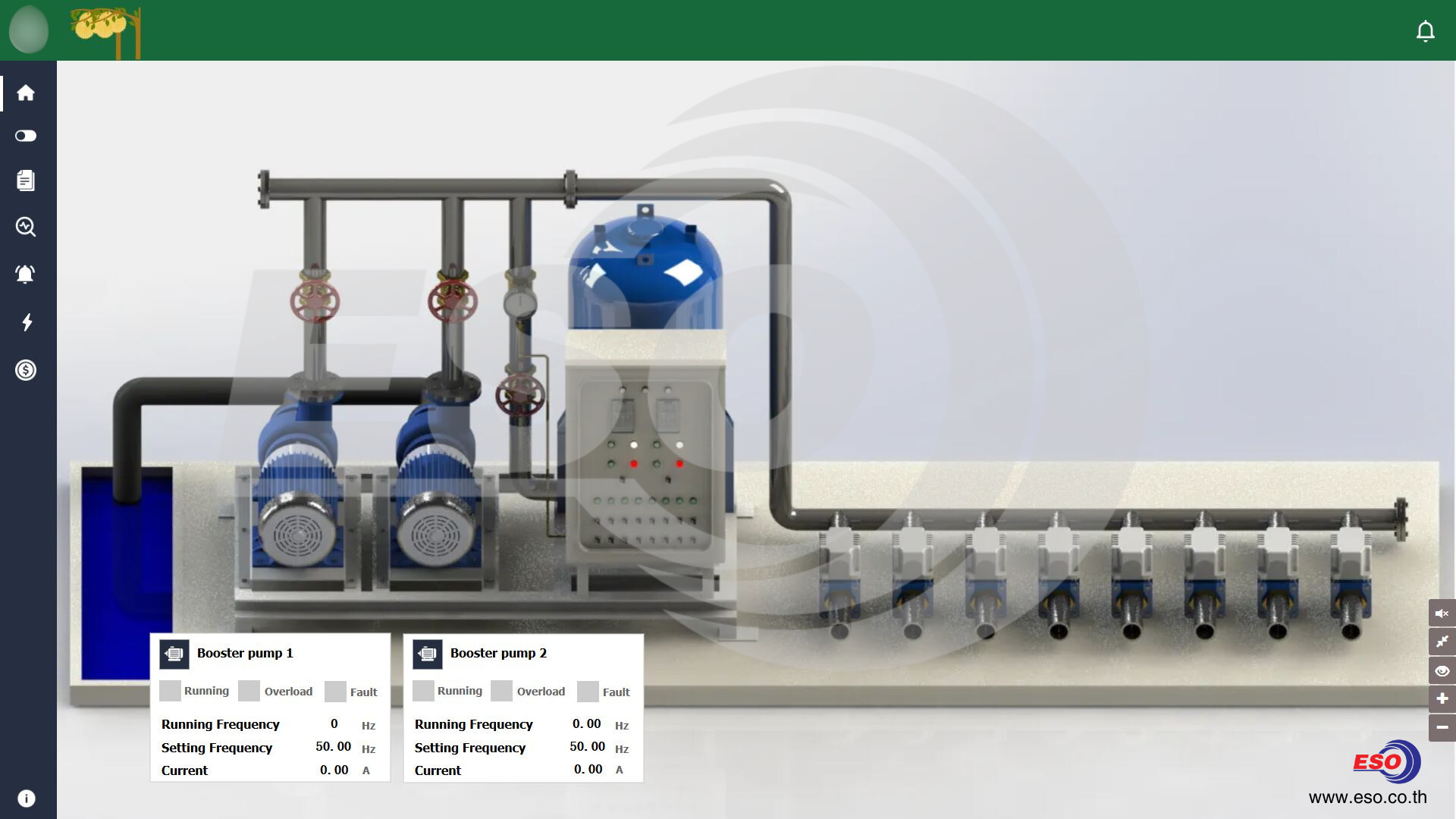IoT Dashboard แสดงผลการควบคุมสั่งงานบูสเตอร์ปั้มซึ่งสามารถปรับรอบ VSD ได้