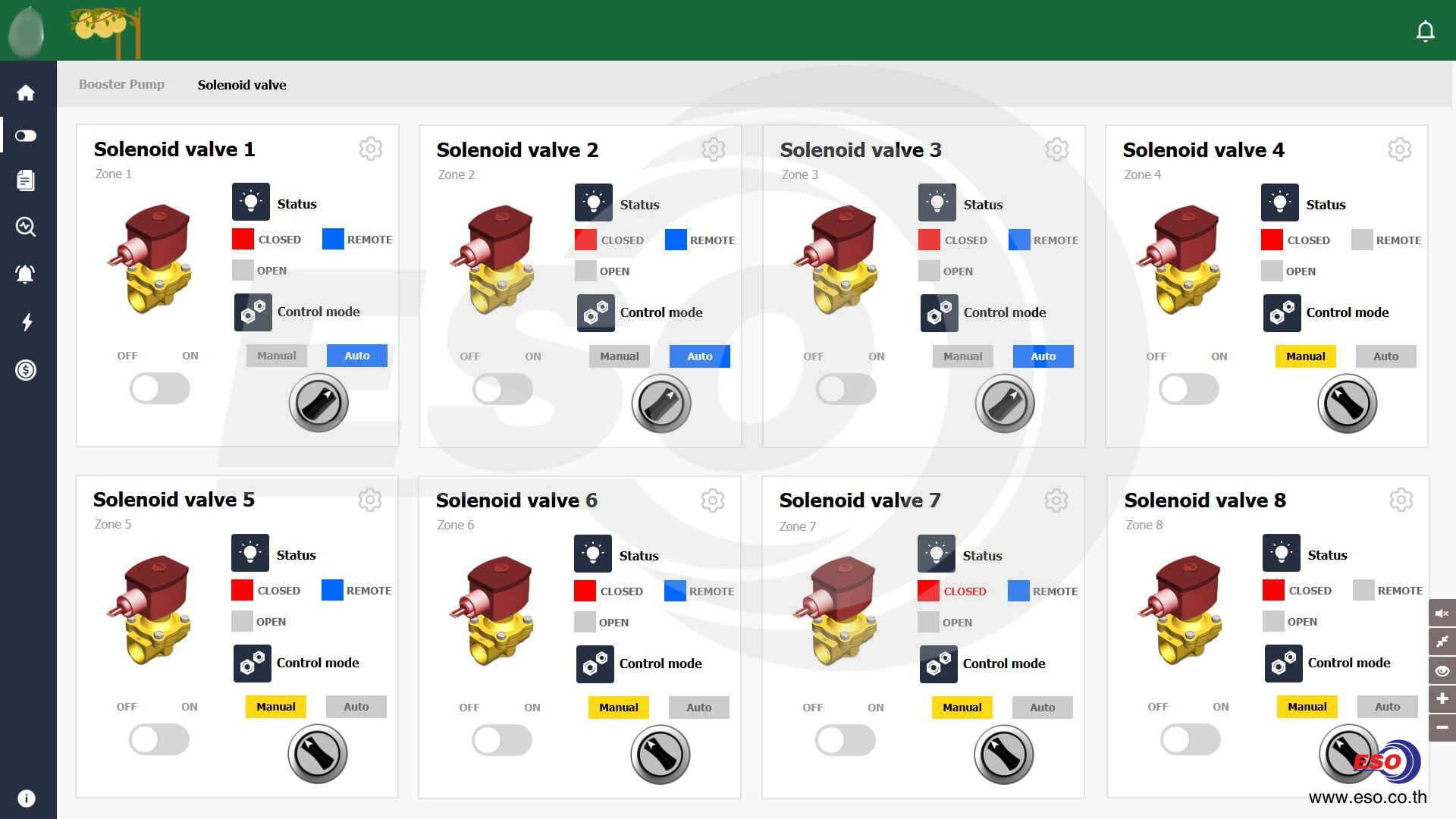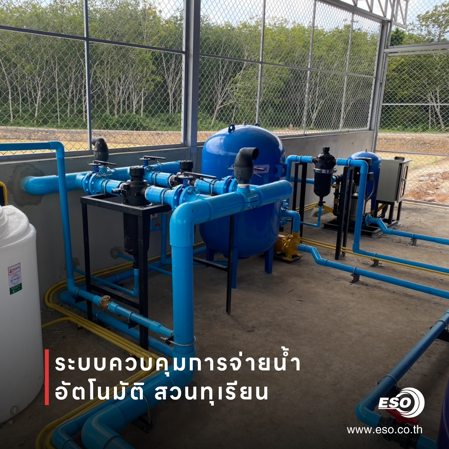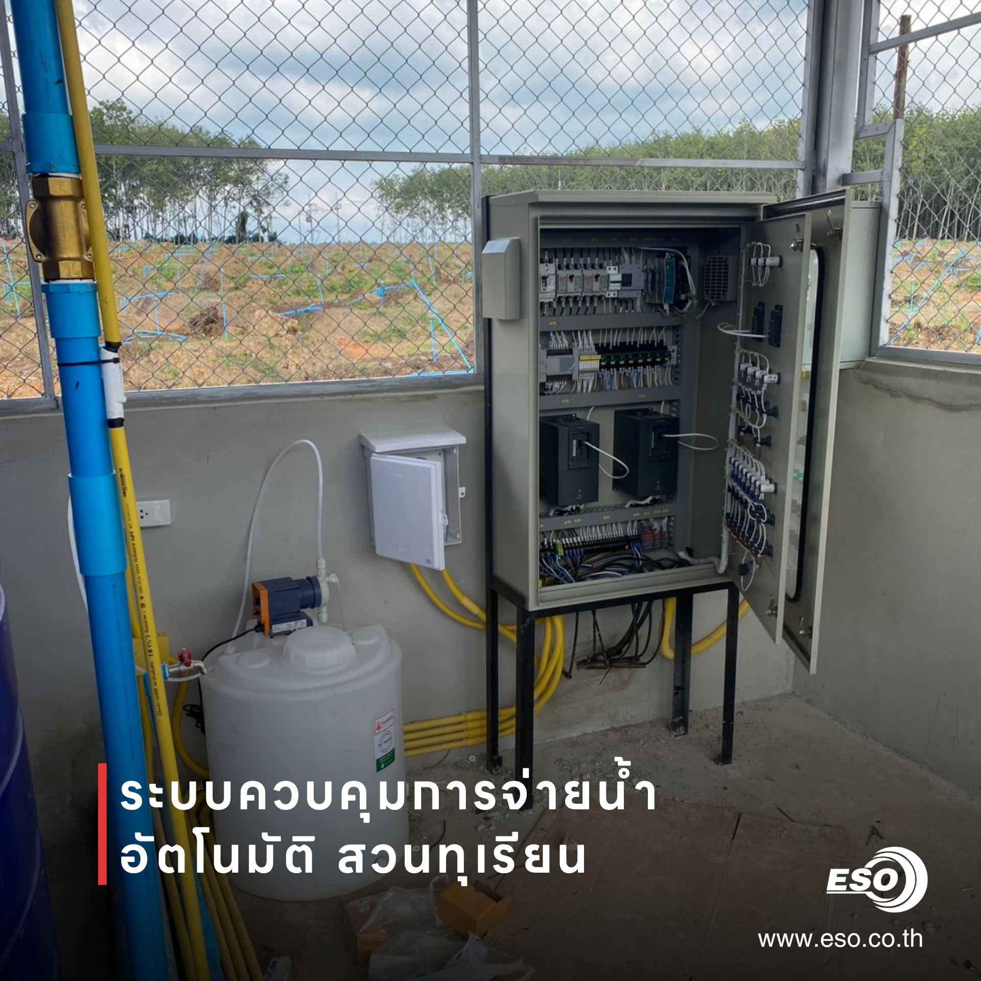 โดยในโปรเจ็คท์นี้ทางบริษัท อีเอสโอ เทค จำกัดได้ส่งมอบตู้ควบคุมและทดสอบระบบไปเมื่อต้นปีที่ผ่านมา เป็นสวนทุเรียนแห่งหนึ่ง ในอำเภอสะเดา จังหวัดสงขลา โดยทางลูกค้าได้ติดต่อทีมงานในการขอคำปรึกษาและออกแบบระบบควบคุมชุดบูสเตอร์ปั้ม และวาล์วจ่ายน้ำที่ต่อไปรดน้ำให้กับทั้งสวนทุเรียน