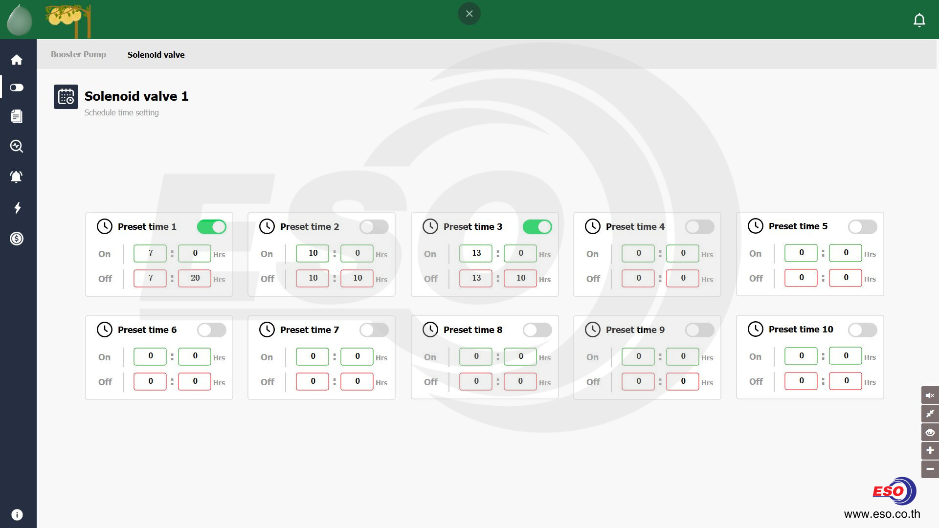 IoT Dashboard แสดงการตั้งค่า Preset program ตั้งเวลาเปิด-ปิดวาล์วน้ำได้ถึง 10 โปรแกรม