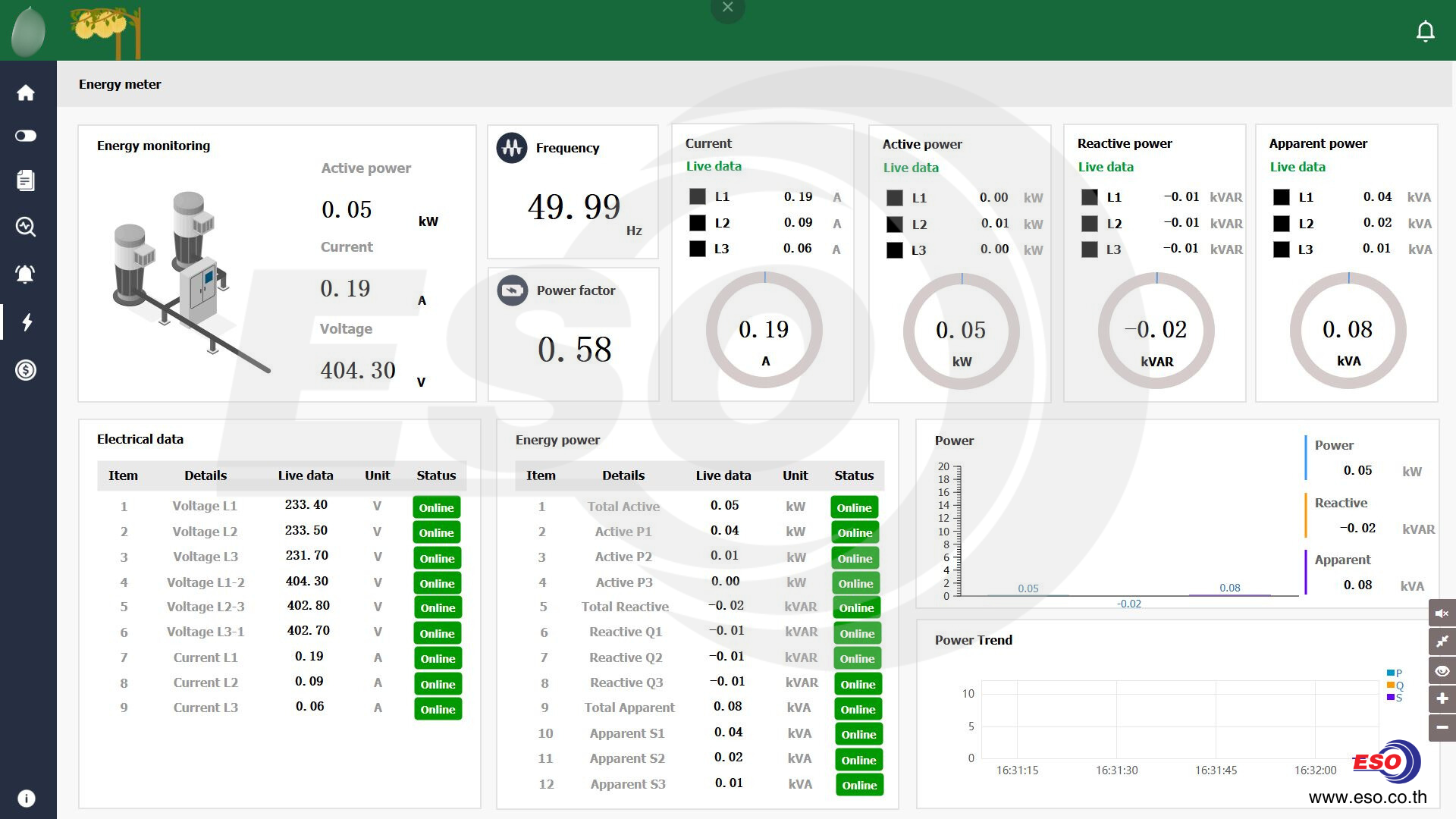 IoT Dashboard แสดงผลค่าพลังงานไฟฟ้าที่อ่านข้อมูลจากมิเตอร์ไฟฟ้าที่ติดตั้งภายในตู้ควบคุม