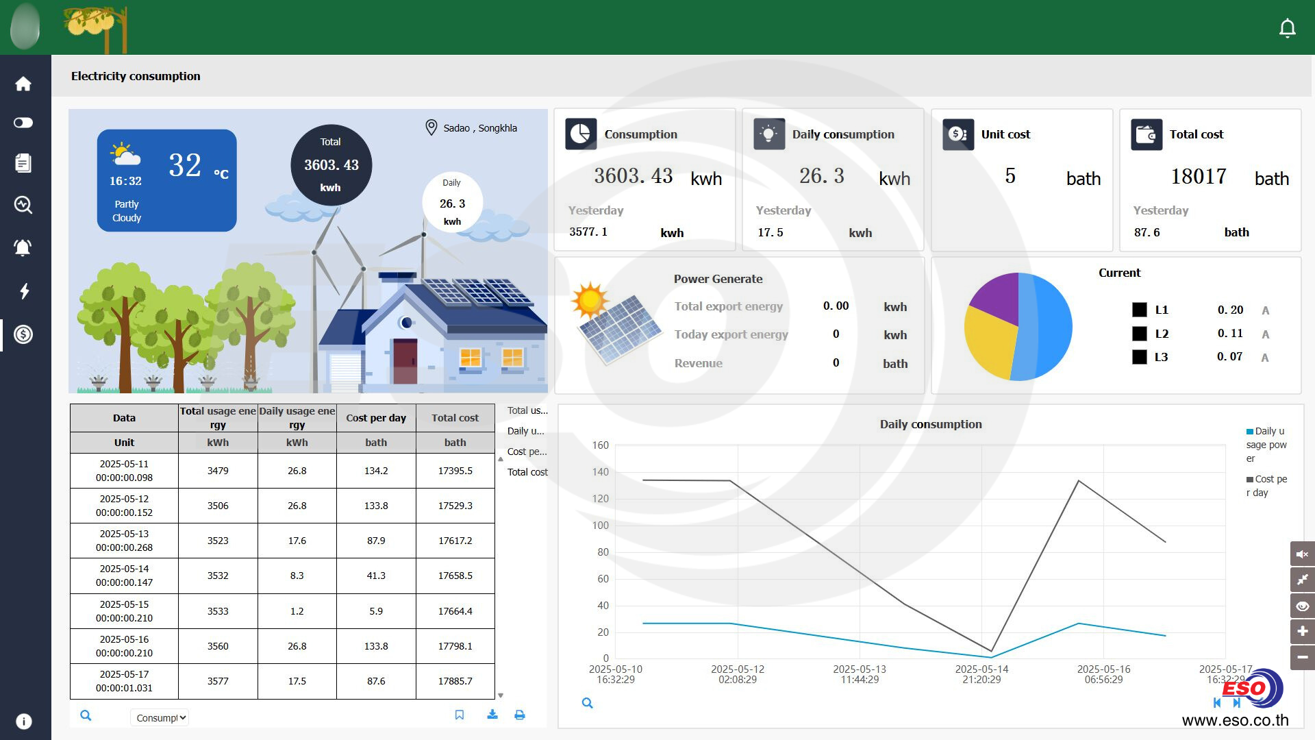 IoT Dashboard แสดงผลการใช้พลังงานในแต่ละวันและสภาพอากาศในพื้นที่