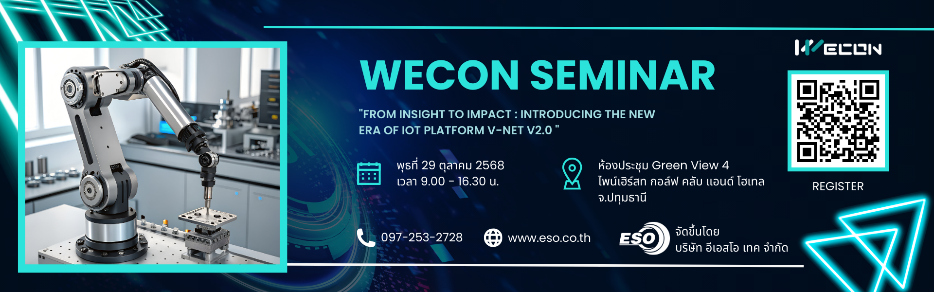 เปิดลงทะเบียนแล้ว " WECON V-NET 2.0 SEMINAR 2025" งานสัมมนาใหญ่แห่งปีของ WECON ร่วมกับ ESO TECH
