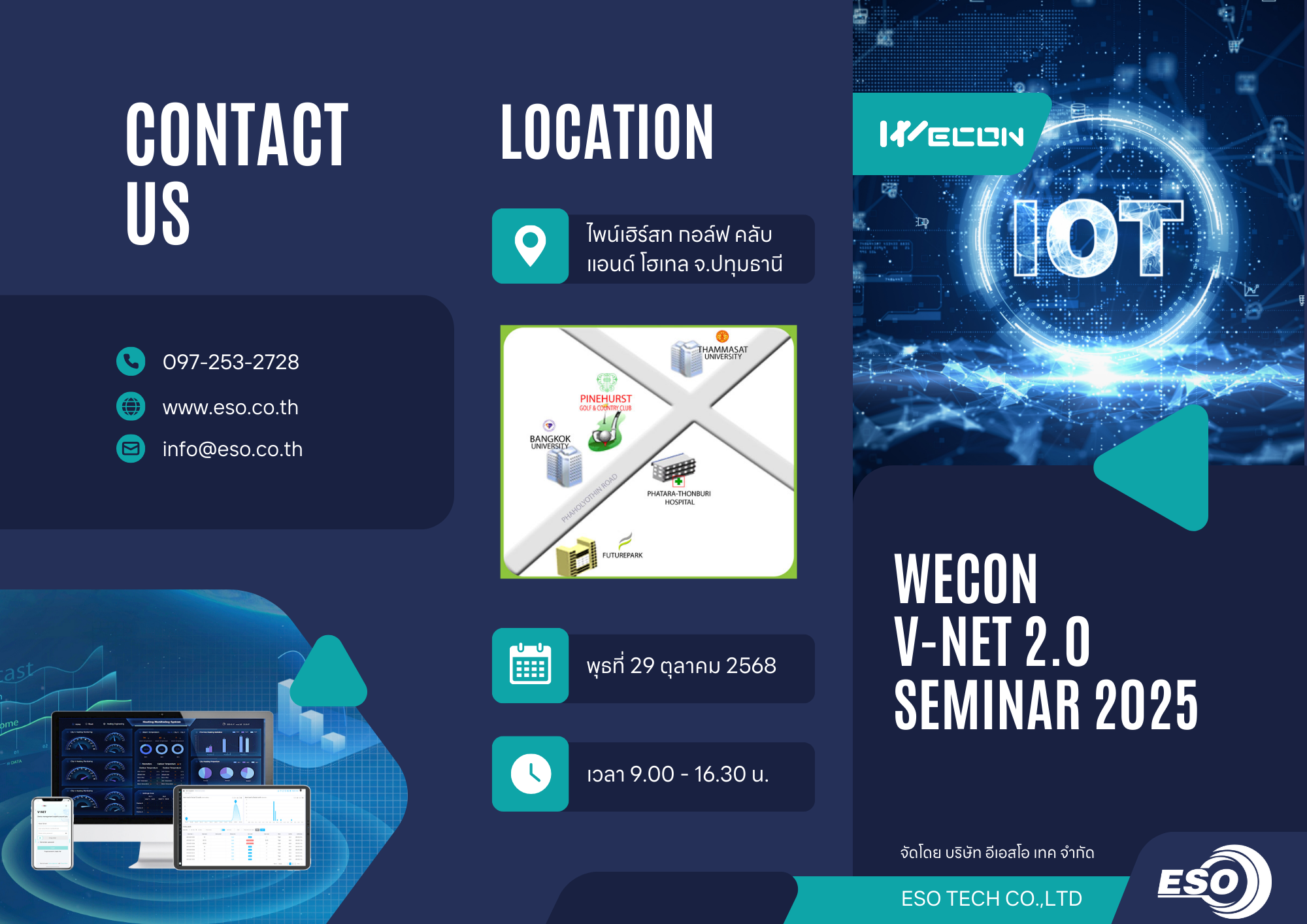 พลาดไม่ได้การงานสัมมนาใหญ่แห่งปีจากทาง WECON TECHNOLOGY CO.,LTD ร่วมกับทางบริษัท อีเอสโอ เทค จำกัด ได้จัดขึ้นในปีนี้มาในหัวข้อหลักอย่าง IoT Platform V-NET V2.0 จากทาง WECON ที่เพิ่งอัพเกรดครั้งใหญ่ ซึ่งเราจะได้มาลงรายละเอียดเบื้องลึกเบื้องหลังกันในงาน