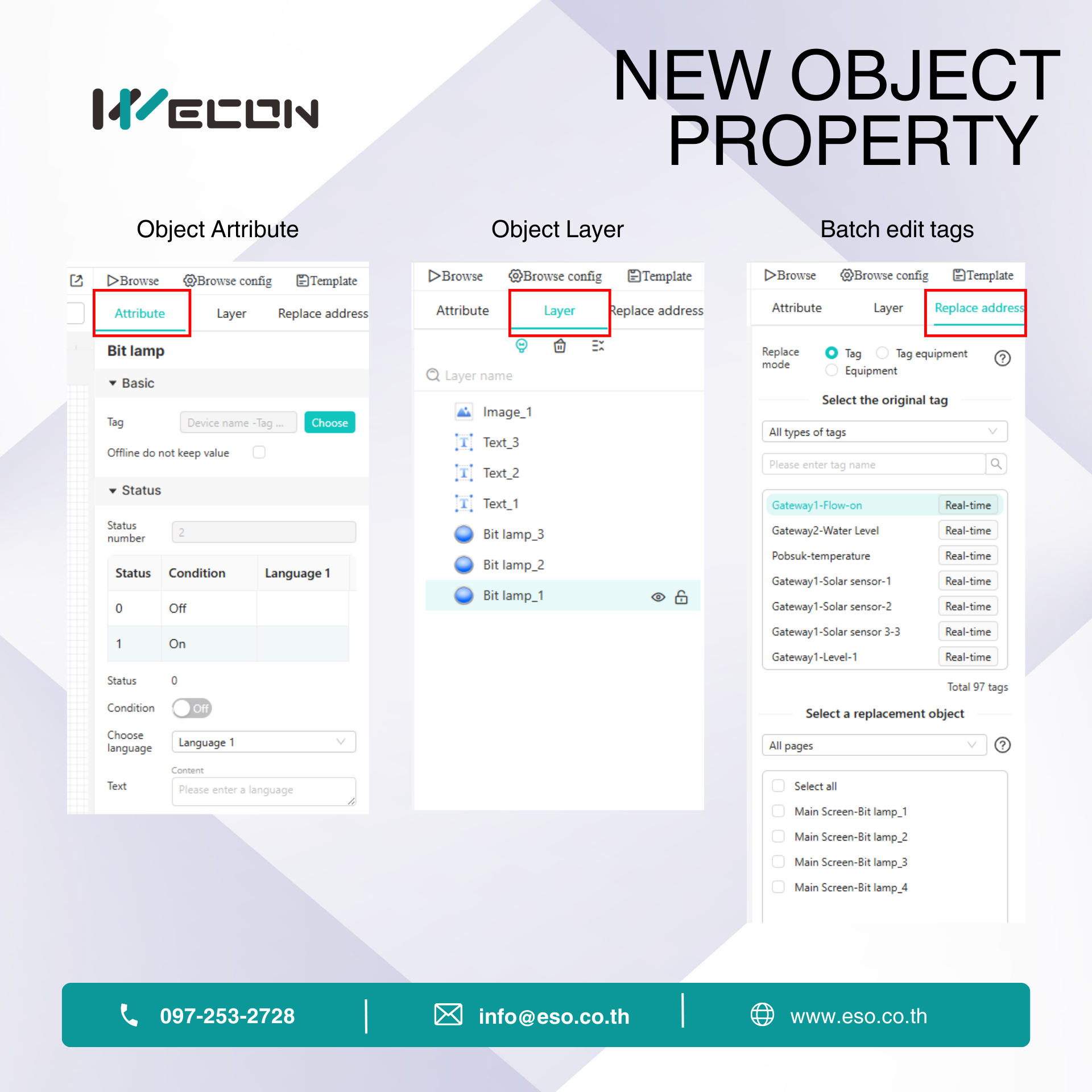 Replace address ฟังก์ชั่นใหม่ที่เพิ่มเข้ามาเพื่อให้ง่ายต่อผู้ใช้งานในการแก้ไขแอดเดรสในแต่ละ Object บางท่านอาจจะเคยมีการสร้าง Object และผูกแอดเดรสไปหมดโปรเจคแล้วมีการแก้ไขชื่อและแอดเดรสใหม่ นึกสภาพมานั่งไล่ใส่ใหม่ จะร้องไห้!! เราสามารถใส่ Tag พร้อมกันทีเดียวหลายๆ Object ทั้งหน้า Page ได้เลย ซึ่งตอนเราออกแบบใหม่ก็สามารถใช้ได้เช่นกัน ทำให้เราลดระยะเวลาลงไปได้อีกด้วย เจ๋งมาก!