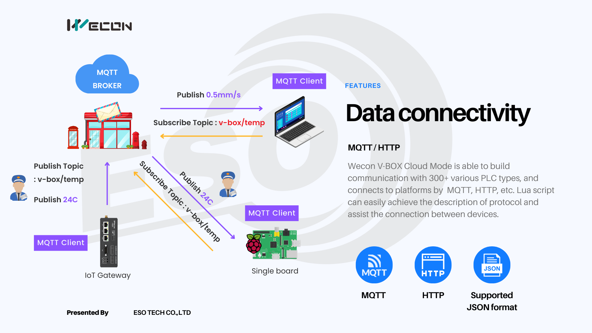 ในอุปกรณ์ WECON ที่รองรับ MQTT ในตอนนี้จะรองรับกับ HMI ig Series และ V-Box ถึงทุกซีรี่ย์ที่รองรับการใช้งาน Lua Script