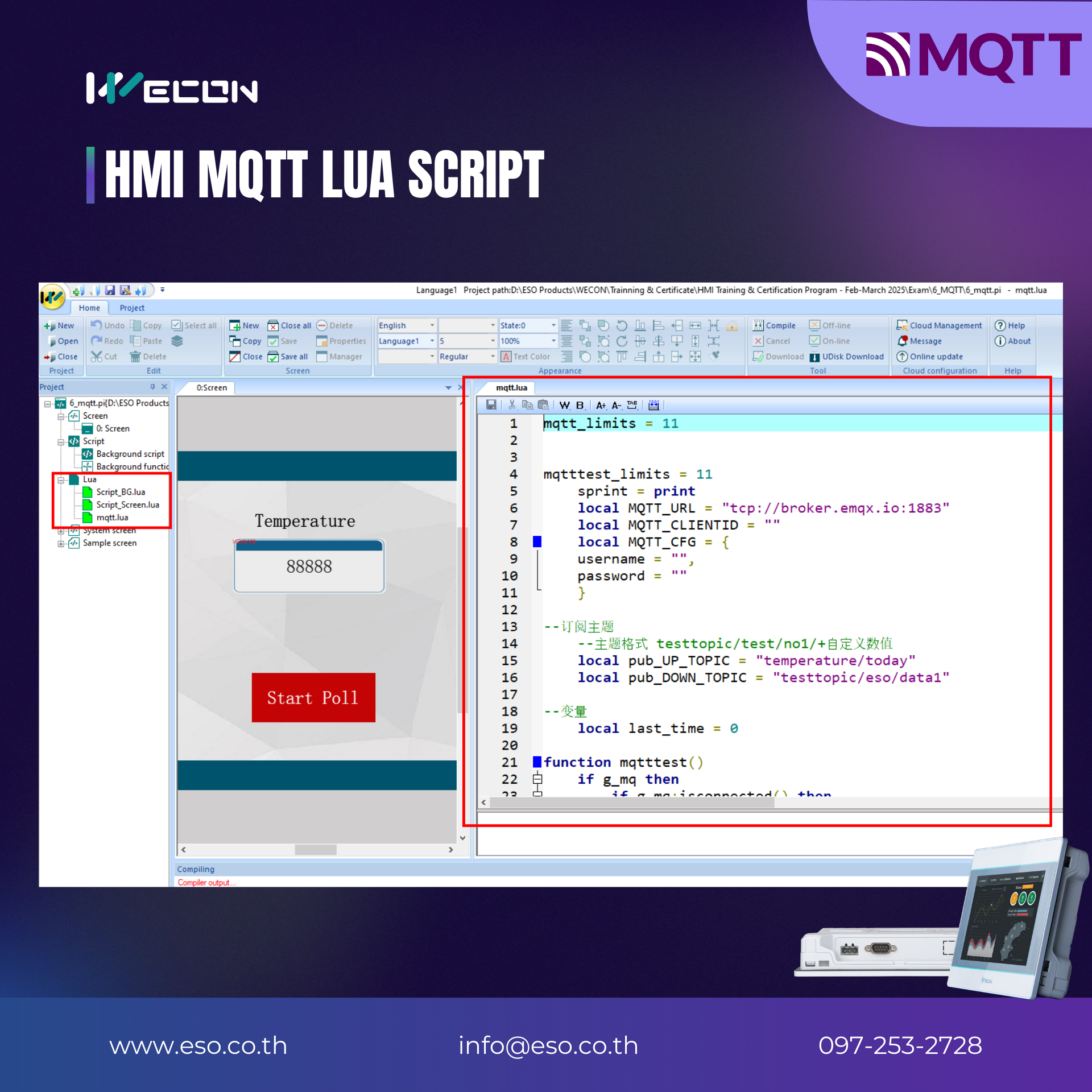 ตัวอย่างการใช้าน MQTT Protocol สำหรับ HMI ที่ใช้งานผ่าน Lua Script