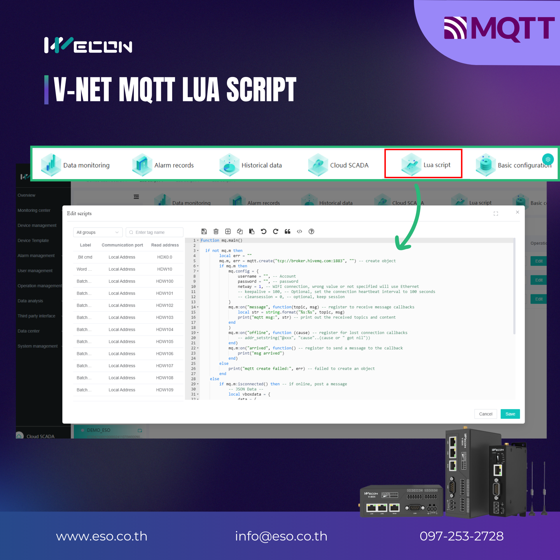และในส่วน V-Box ปัจจุบันจะใช้งาน MQTT ผ่าน Lua script ซึ่งจะเหมือนกันกับการใช้งาน Lua Script บน HMI