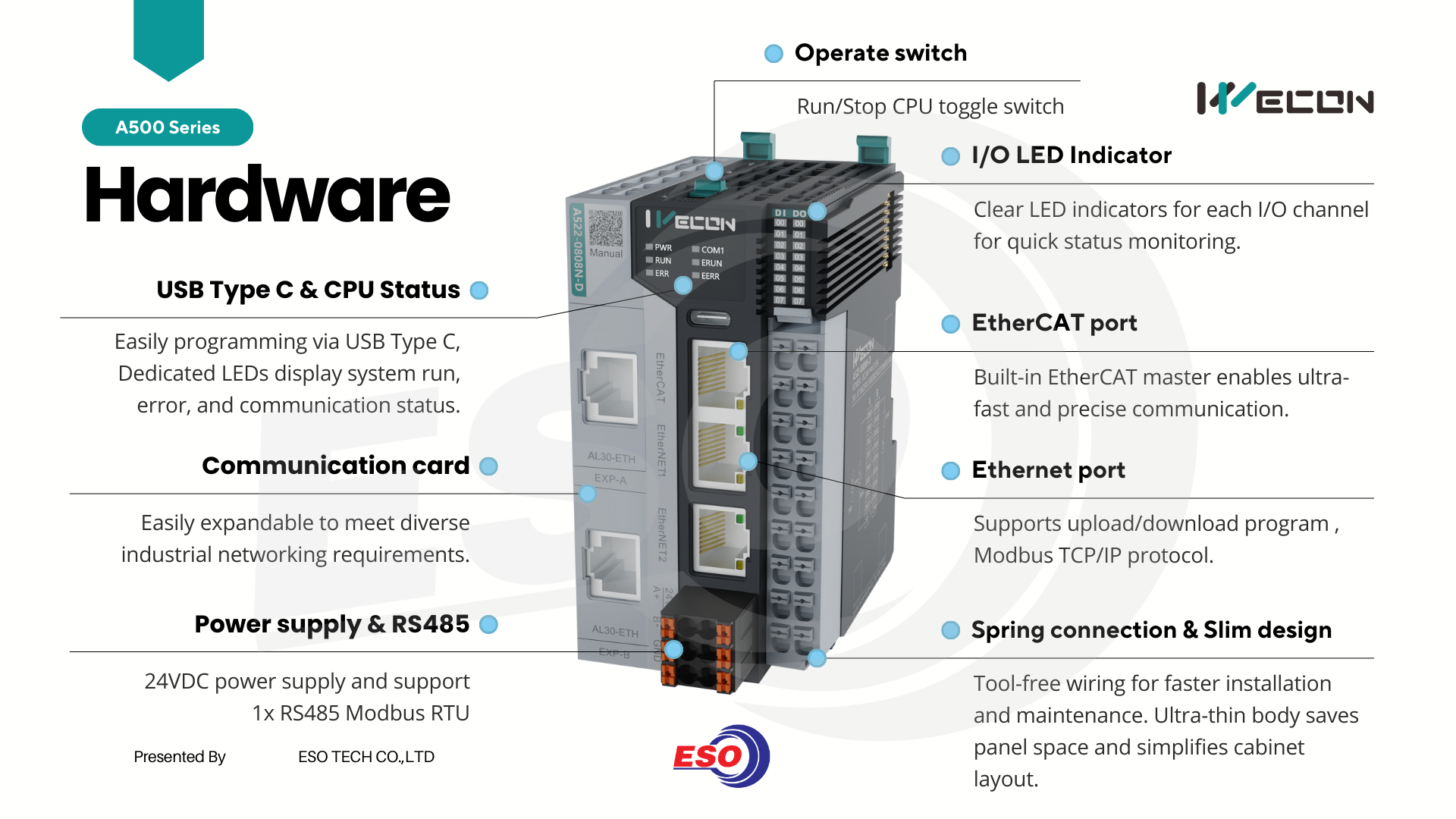 A500 Series นับว่าเป็น PLC Production line ใหม่สำหรับปี 2025 นี้ และทางผู้ผลิตเองก็มีความภูมิใจอย่างมากในการพัฒนาจนสำเร็จและออกวางจำหน่าย โดยมีจุดเด่นอยู่หลายอย่างเลยทีเดียว ทาง WECON เองจะวาง Position ของ A500 Series นั้นอยู่รองลงมาจาก LX6 Series แต่จะเหนือกว่า LX5V compact PLC รุ่นท็อบสุดนั่นเอง แต่จุดเด่นคือราคาพอๆกันกับ LX5V Series เลย