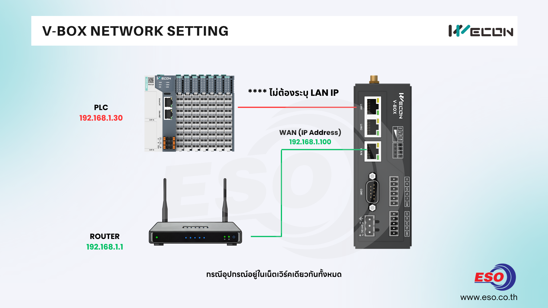 นี่คือสิ่งที่พบเจอข้อผิดพลาดมากที่สุดในการตั้งค่าการใช้งาน V-Box เพราะหากอุปกรณ์เป็น IP เน็ตเวิร์คเดียวกันแล้วแต่ไปตั้งขา LAN IP ซ้ำ จะทำให้ไม่สามารถเชื่อมต่อกับอุปกรณ์ได้ พอร์ตจะมองไม่เห็นเหมือน IP Address ชนกัน