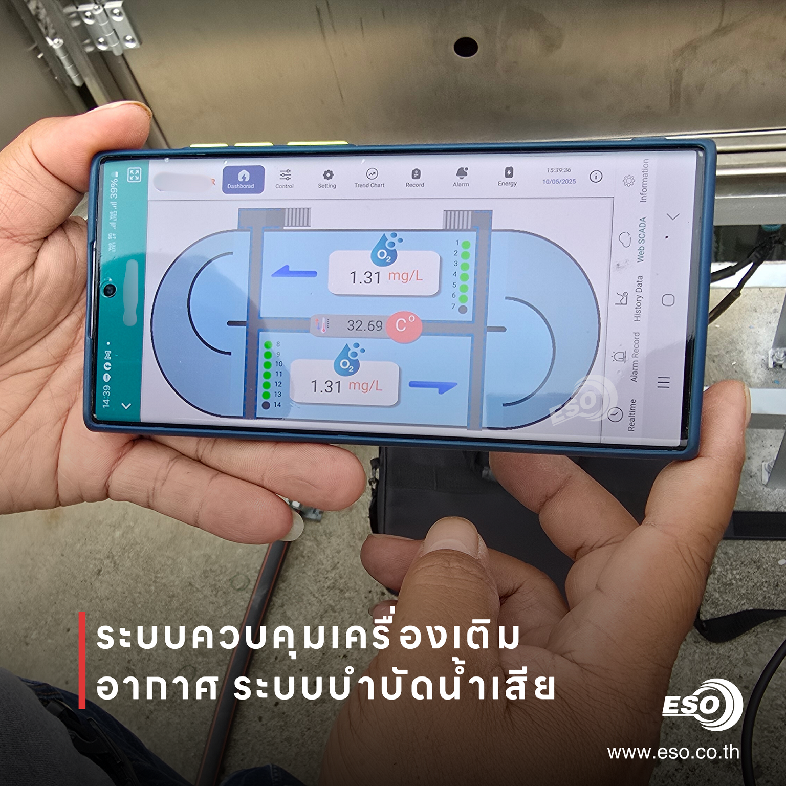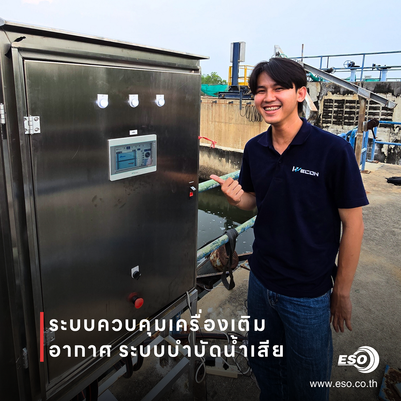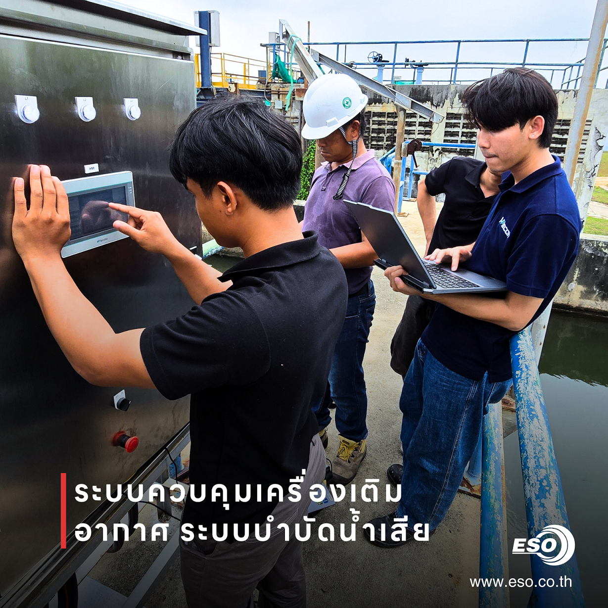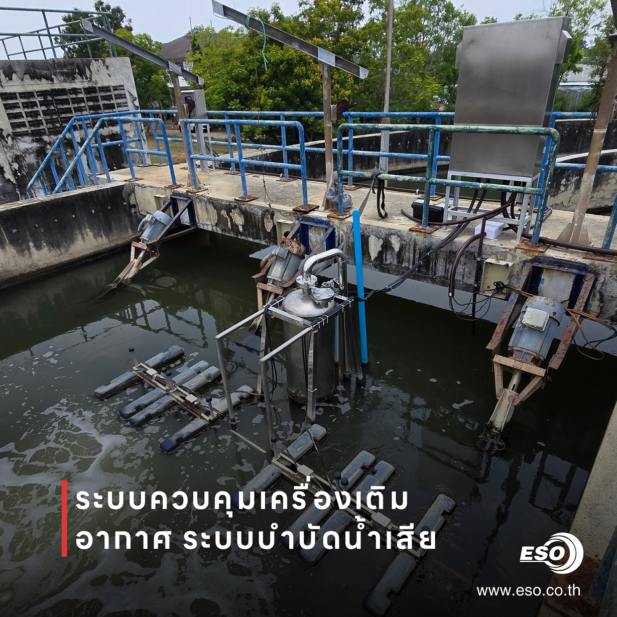 บริษัท ESO TECH Co., Ltd. ได้รับความไว้วางใจจากผู้ออกแบบและวางระบบบำบัดน้ำเสีย ในการเข้าร่วมปรับปรุงและพัฒนาระบบเติมอากาศ (Aeration System) สำหรับสถานีปรับปรุงคุณภาพน้ำแห่งหนึ่งในจังหวัดฉะเชิงเทรา โดยทีมงานของเราได้รับหน้าที่จัดหาอุปกรณ์ ออกแบบระบบควบคุมอัตโนมัติ และพัฒนาซอฟต์แวร์ควบคุมการทำงานทั้งระบบ