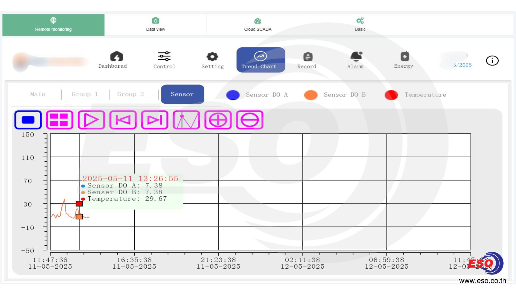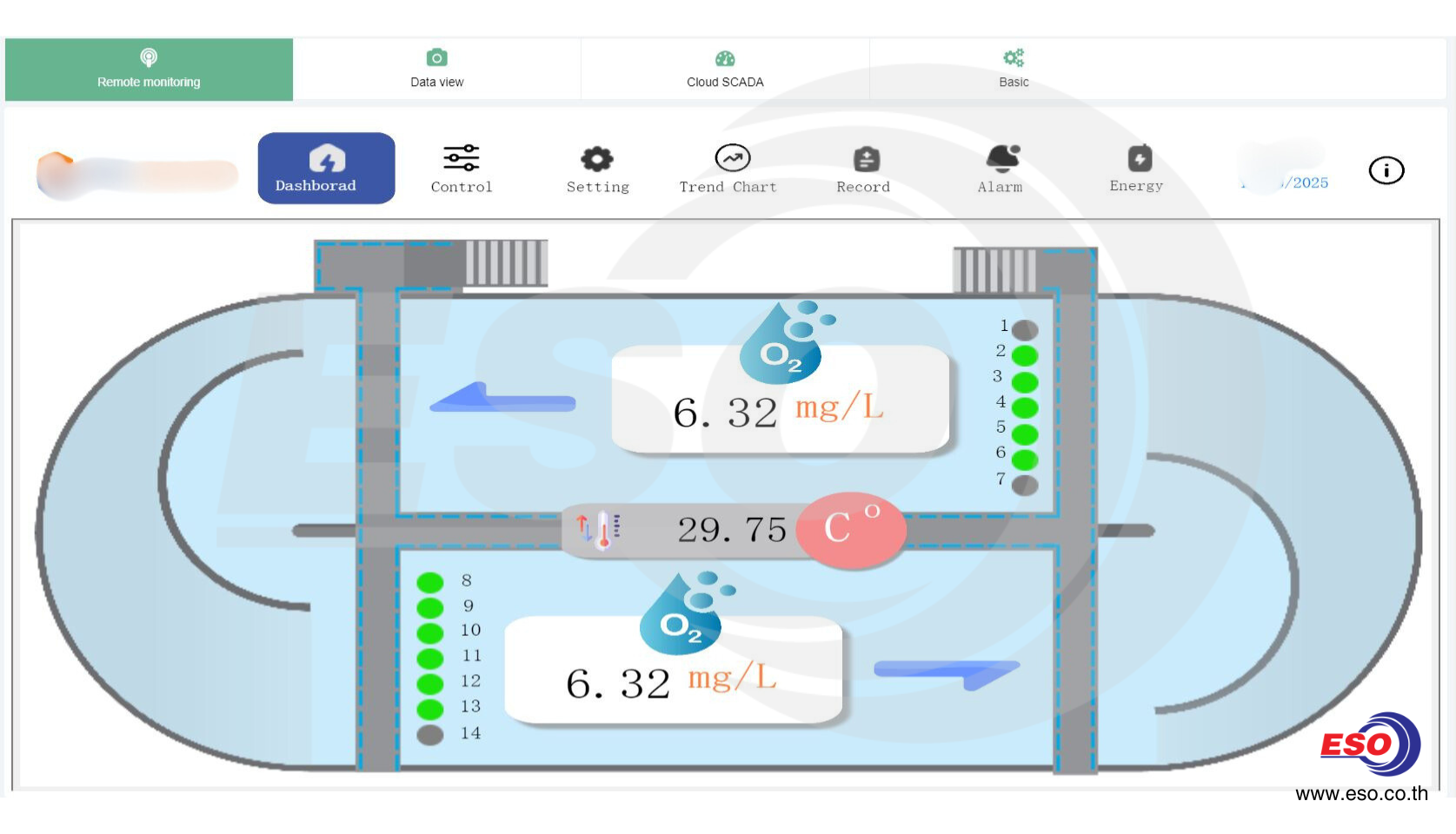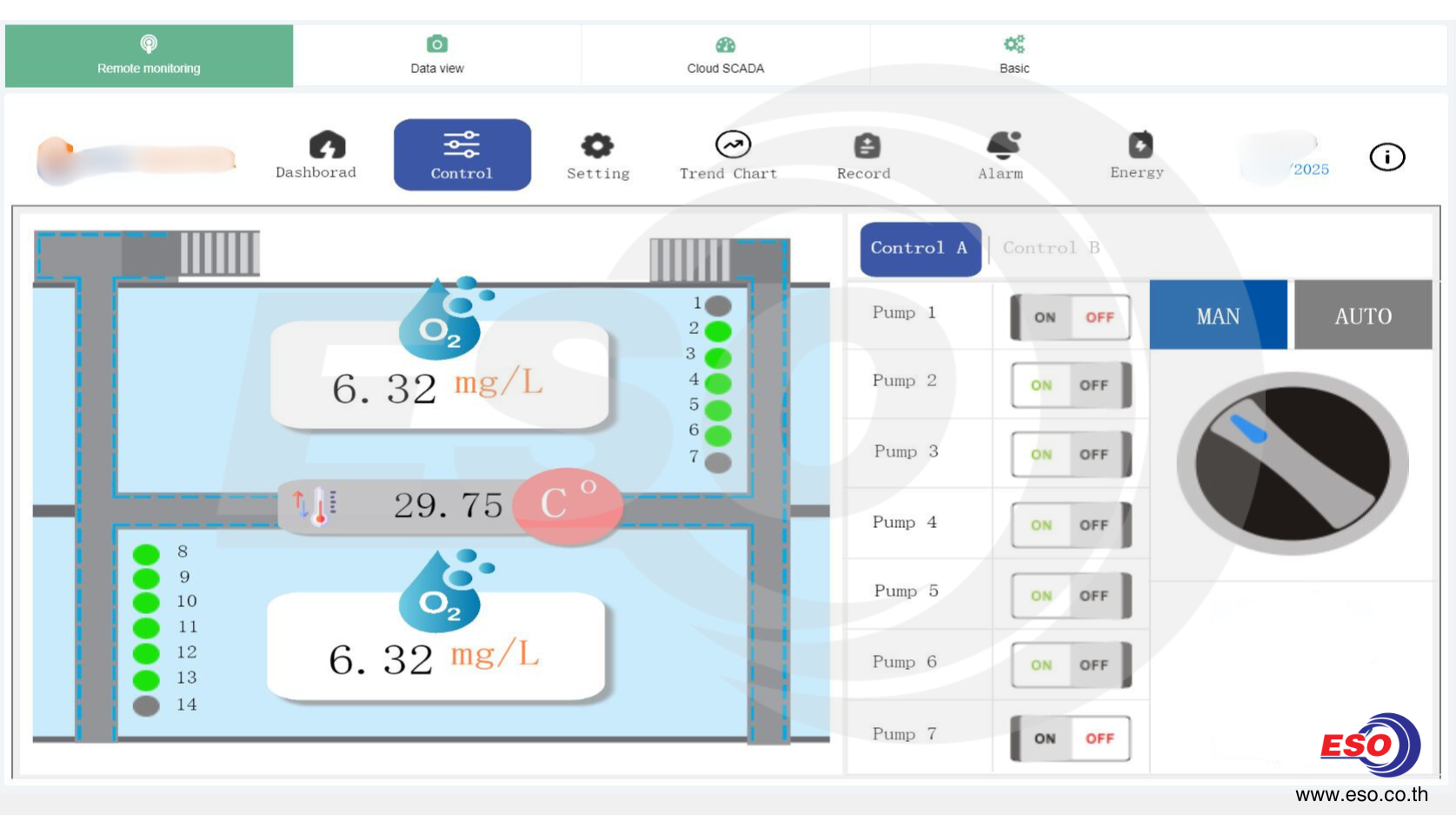 ภาพแสดงโปรแกรม HMI Dashboard ควบคุมระบบเติมอากาศที่ทีมวิศวกร อีเอสโอ เทค ได้ออกแบบให้กับลูกค้า