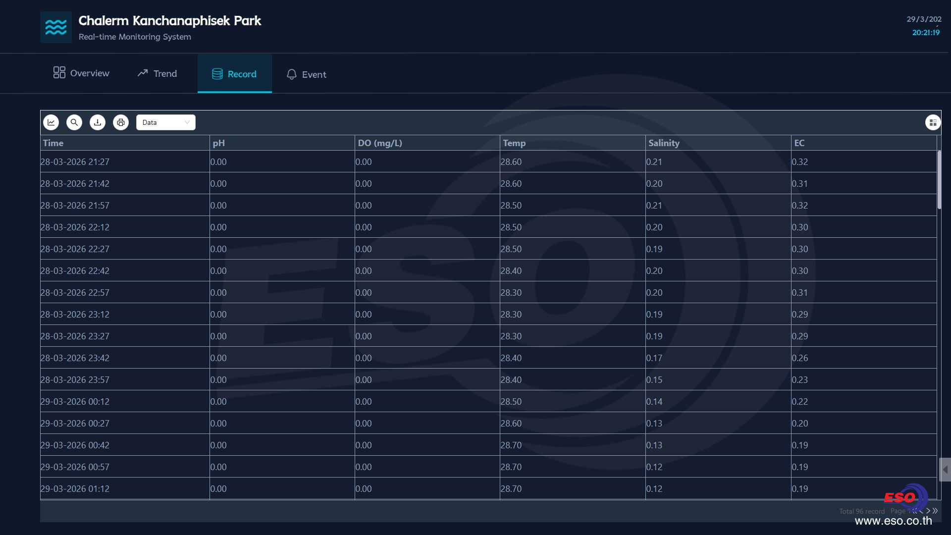 ตัวอย่าง IoT Dashboard แสดงผลระบบวัดคุณภาพน้ำที่ทีม อีเอสโอ เทค ออกแบบให้กับลูกค้า