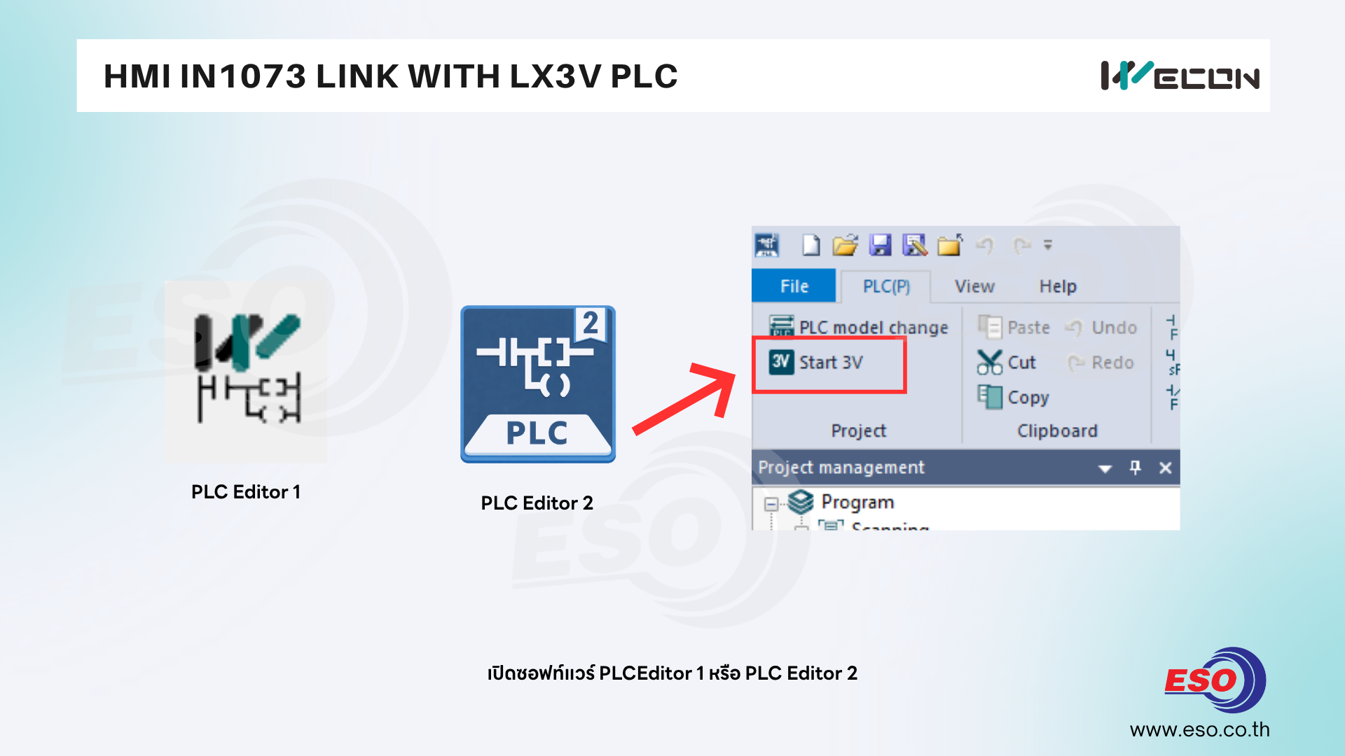 หากใครใช้โปรแกรม PLC Editor V2 ให้กดคลิกไปที่ Start 3V ที่มุมซ้ายบนของเมนูบาร์ โปรแกรมจะเปิดซอฟท์แวร์ PLC Editor V1 มาให้อัตโนมัติ