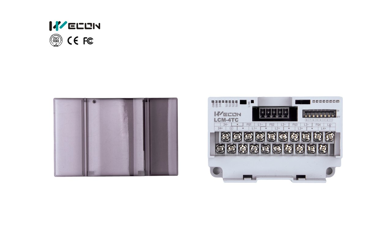 WECON Modbus IO Module / LX3V-4TC , 4 Channels Thermocouple sensor , Type K 100..1200C , Type J 100..600C , Resolution 14 Bits , RS485 Modbus RTU